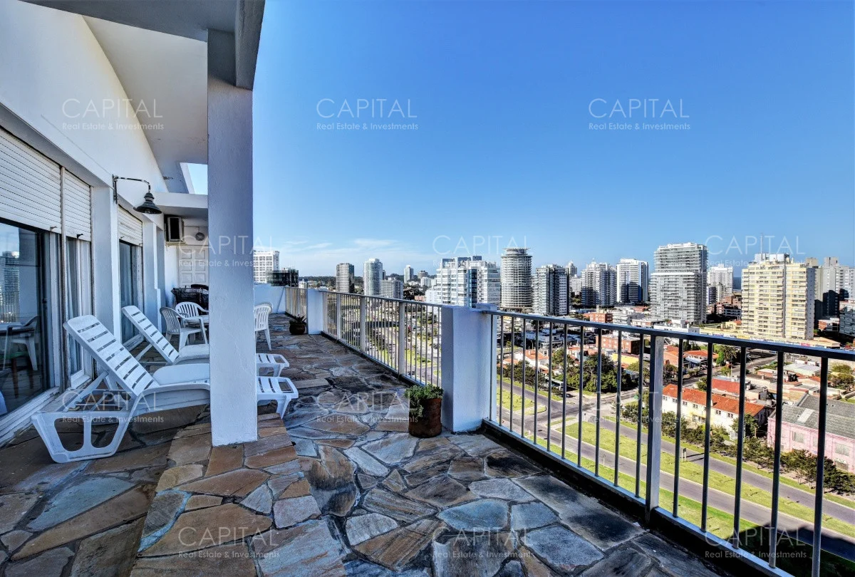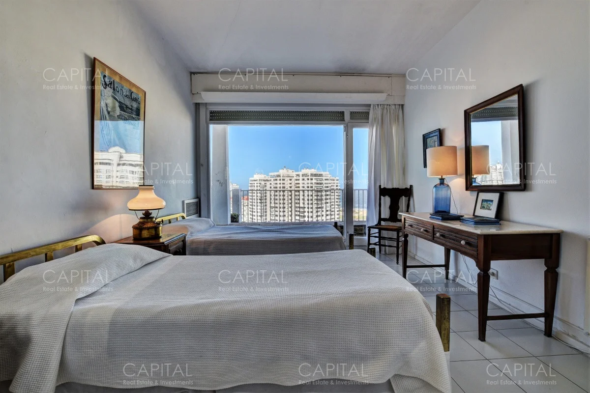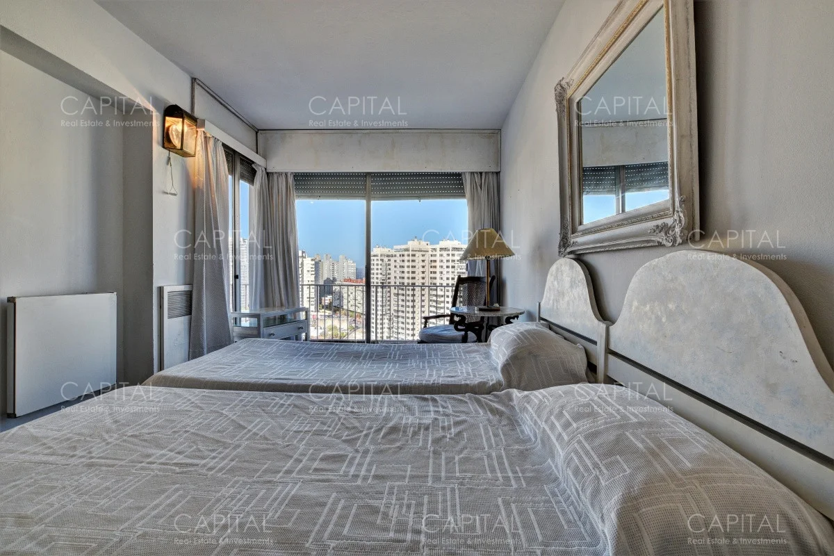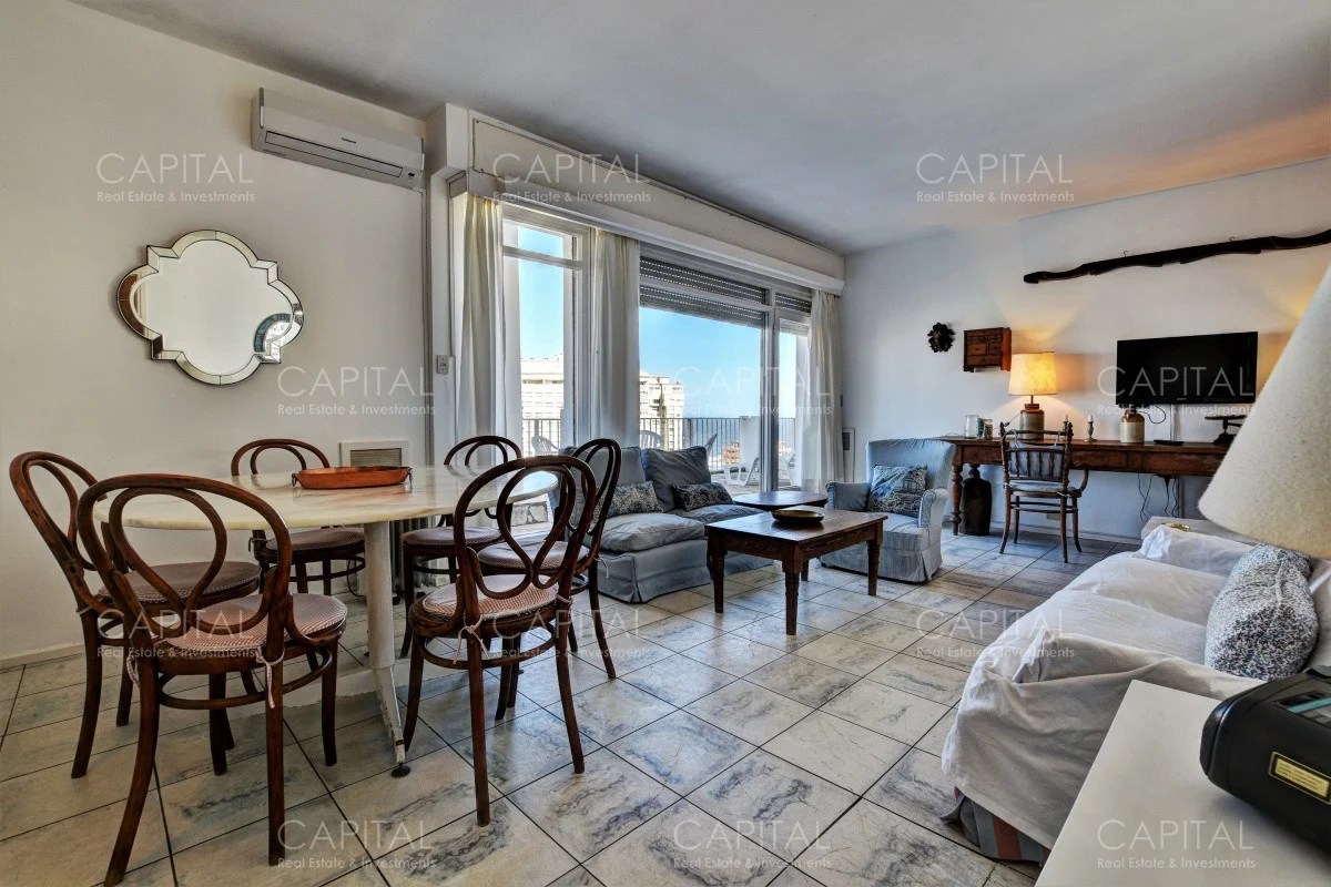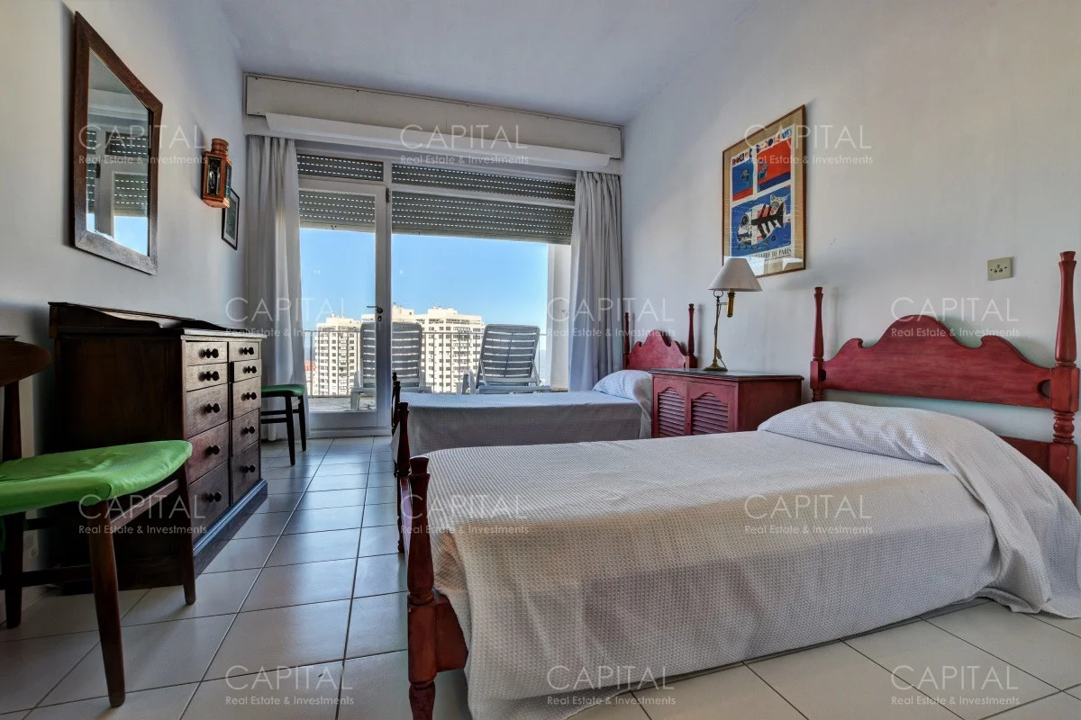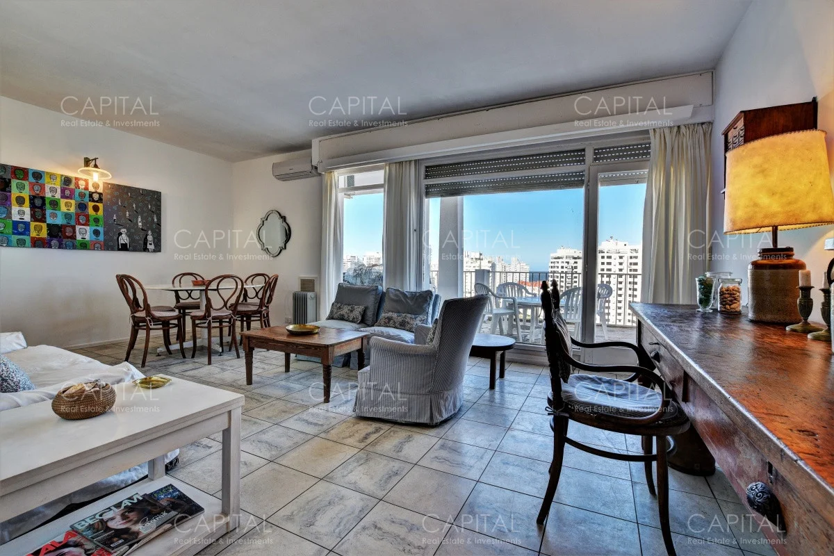 Apartamento primera fila playa Mansa, contrafrente hacia la Brava, con un buen living comedor amplio y luminoso junto a una buena terraza con parrillero propio, muy disfrutable mirando el mar.