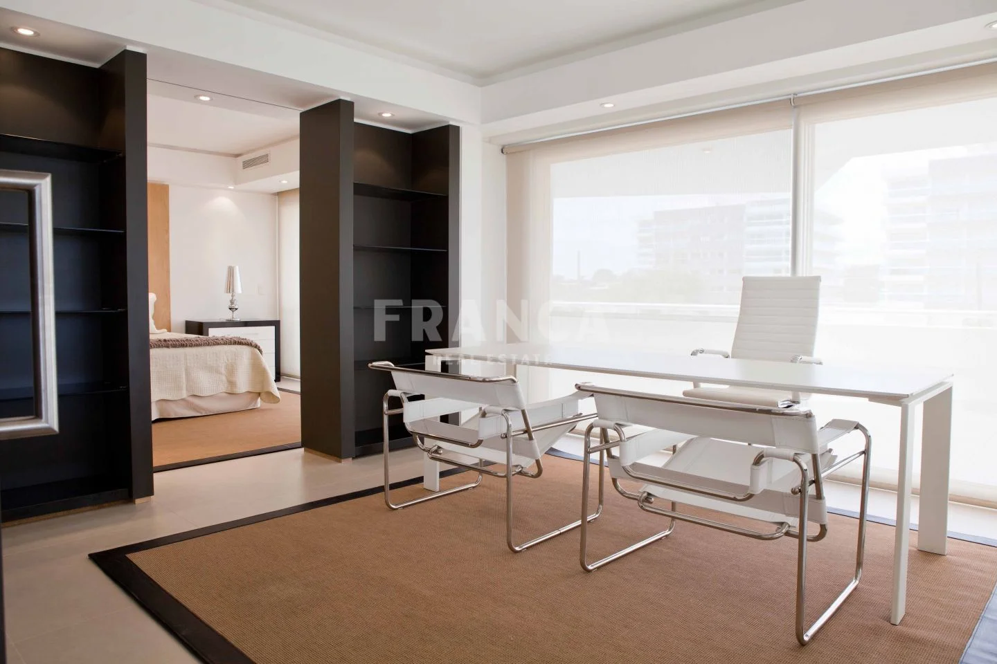 El departamento funciona como una casa tiene 6 dormitorios. Master suite con jacuzzi. Luego cuenta con otra suite y 4 semi suites. El area social es muy amplia con vista mar tiene escritorio, comedor formal y comedor diario. Cocina super completa independiente con equipamiento para la cantidad de personas que alberga. Cuarto de servio.