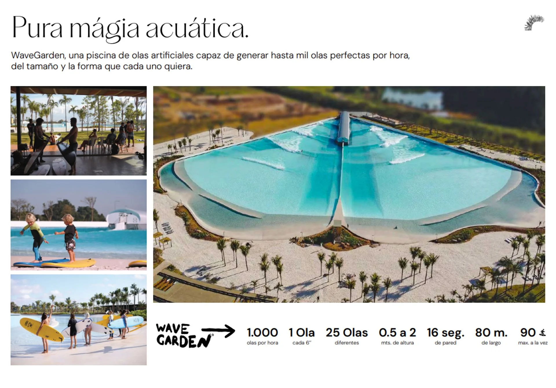 Se trata del primer desarrollo en la zona que integra una piscina con olas, ofreciendo la posibilidad de practicar surf y deportes acuáticos en un entorno seguro y exclusivo, todo el año.