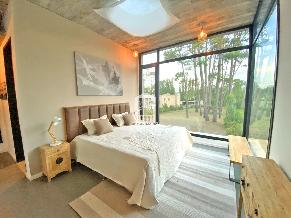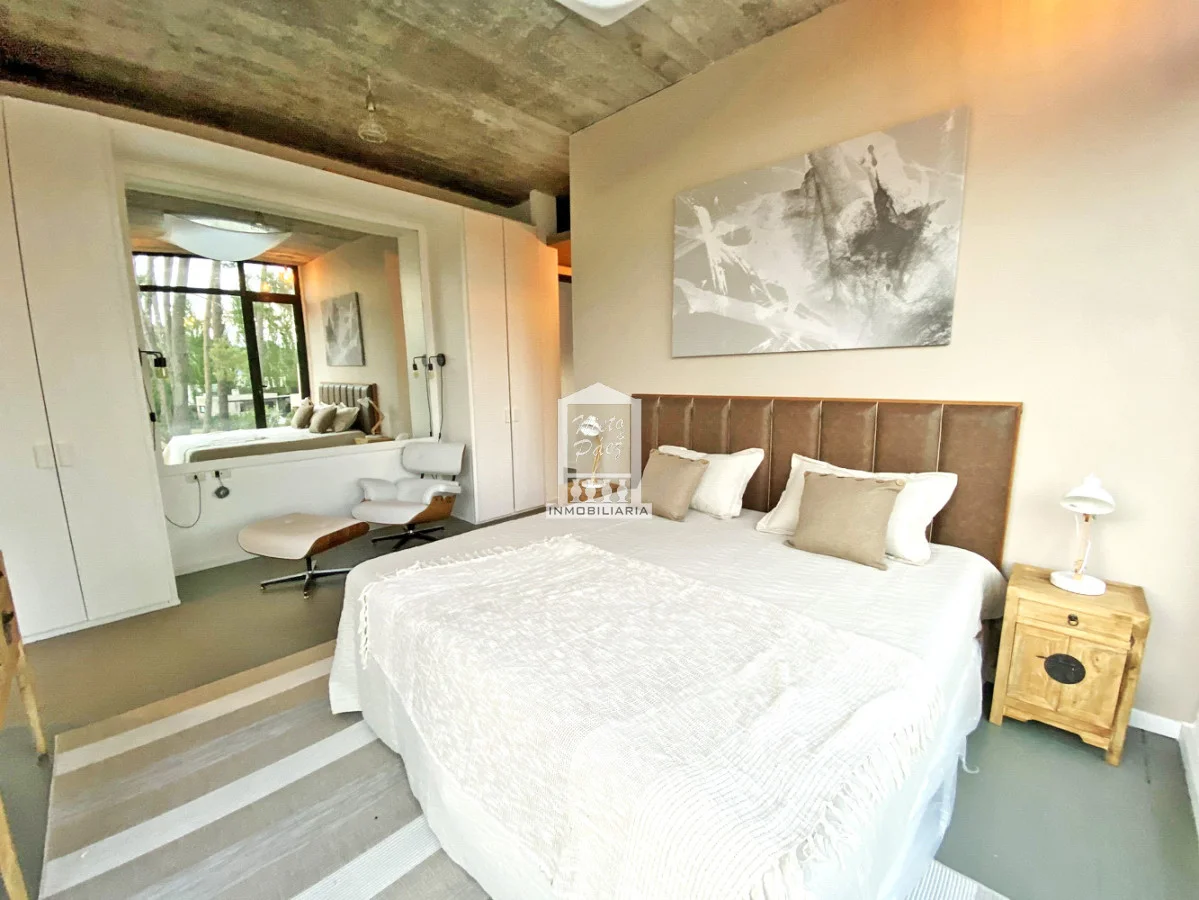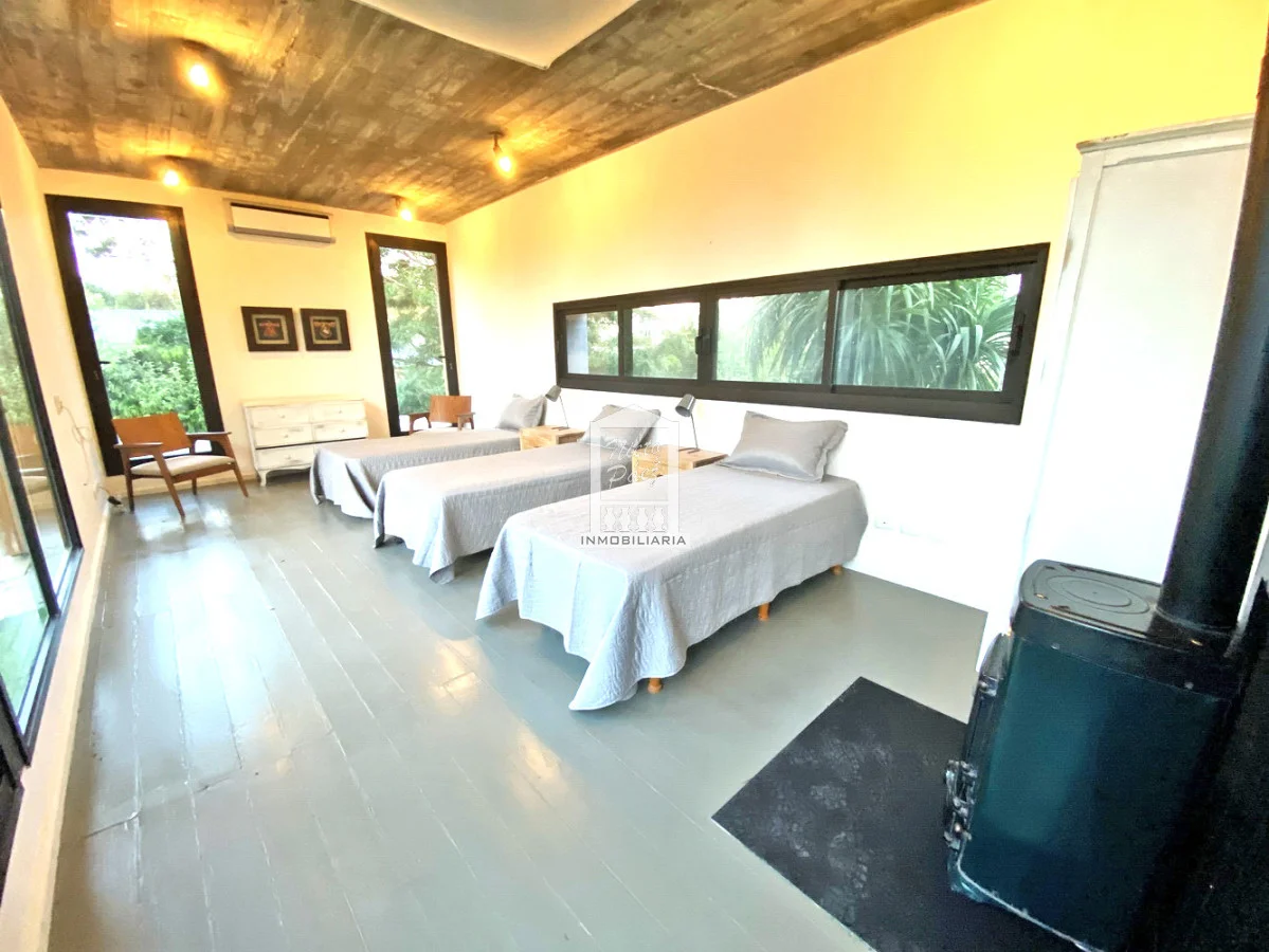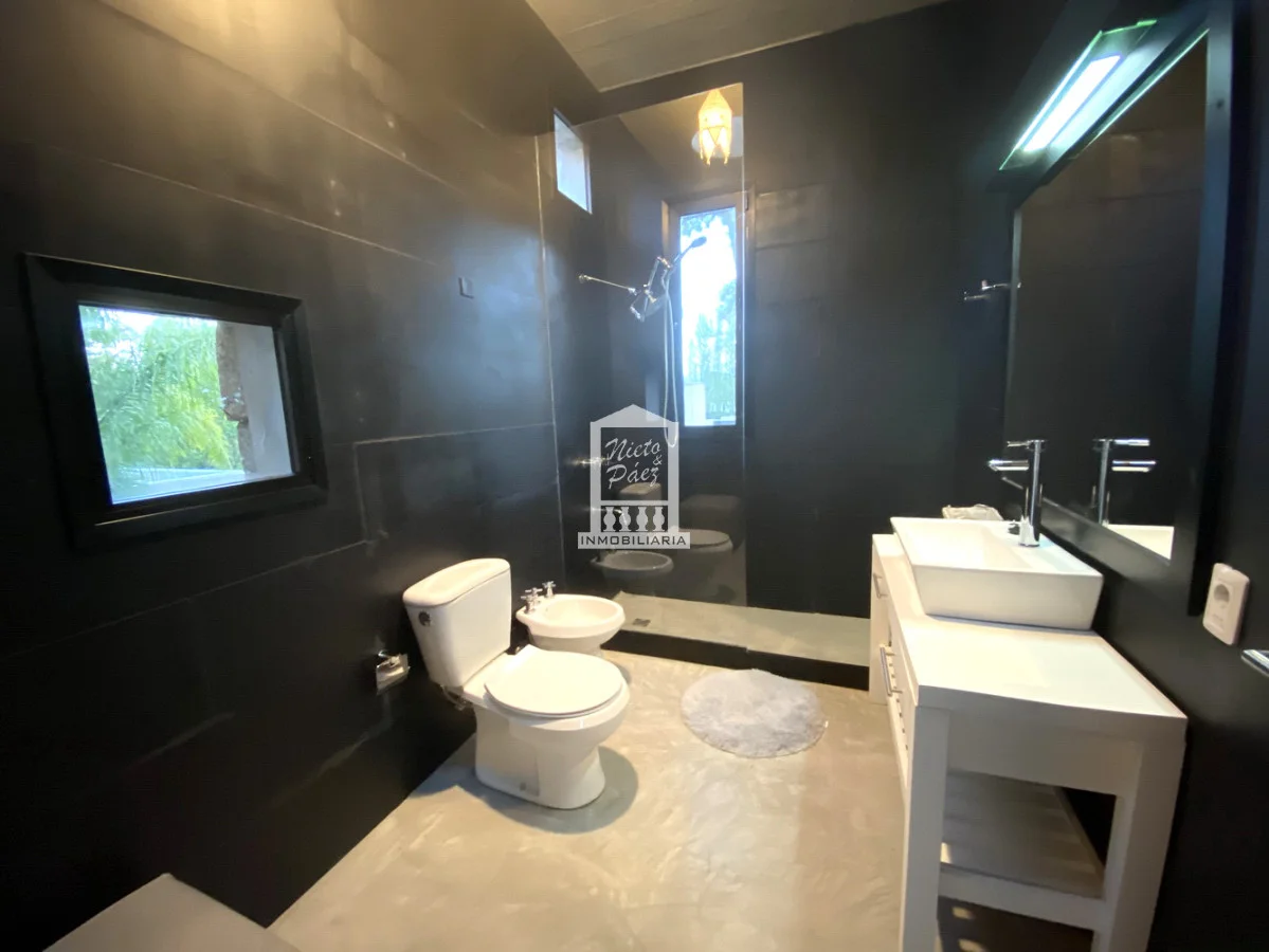 Oportunidad.!! Espectacular casa de diseño pronta para entrar. Detalle de piedra y lapacho. Living en doble altura. Cocina con gran comedor diario y 2 heladeras. Zona de lavadero independiente muy grande. Losa radiante sectorizada, Aire acondicionado. 4 dormitorios en suite + toilette. Casa de servicio o de huéspedes al lado del garaje con living, cocina, dormitorio y baño. Parrillero techado al lado de la piscina climatizada. El garaje es para 2 autos con ingreso directo a la casa. Excelente orientación del sol para todo el año. Gastos comunes: U$S 400 mensuales aprox. Referencia Interna : Tera-34355