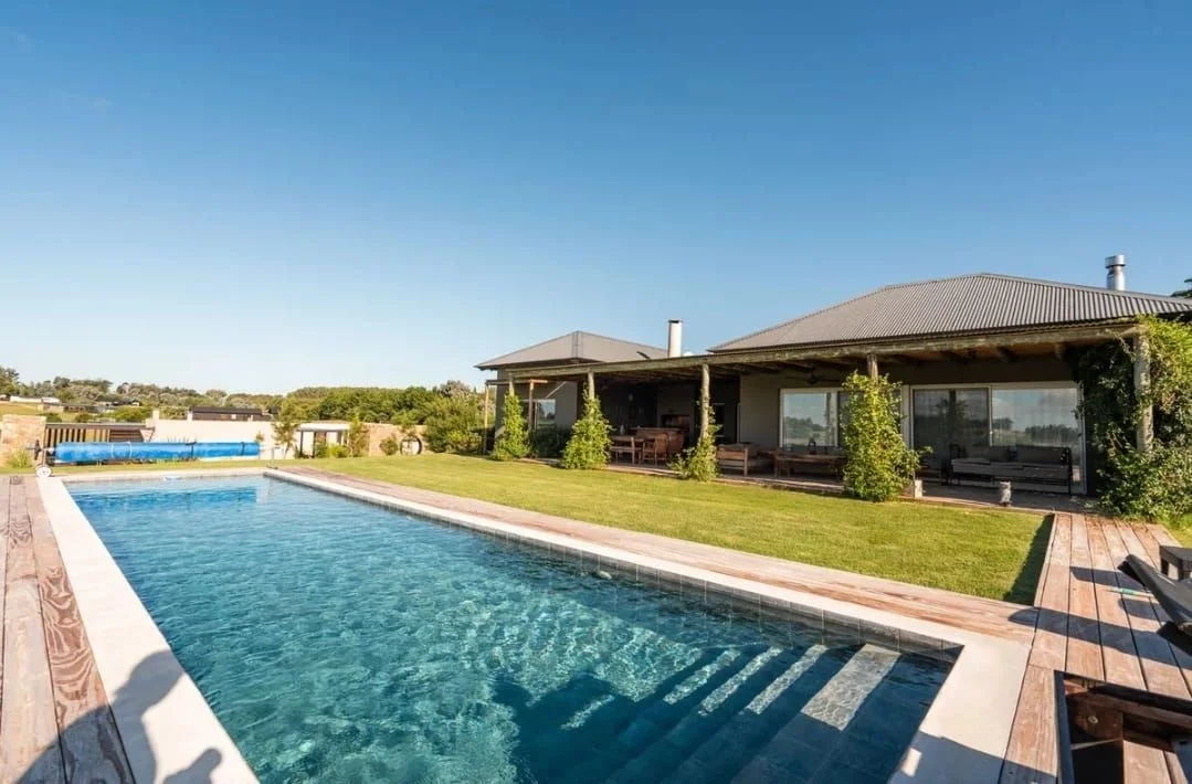 Área de parrilla completamente equipada y pensada con fácil acceso a la cocina de la casa y junto a la piscina climatizada, creando un espacio ideal para disfrutar con familia y amigos.