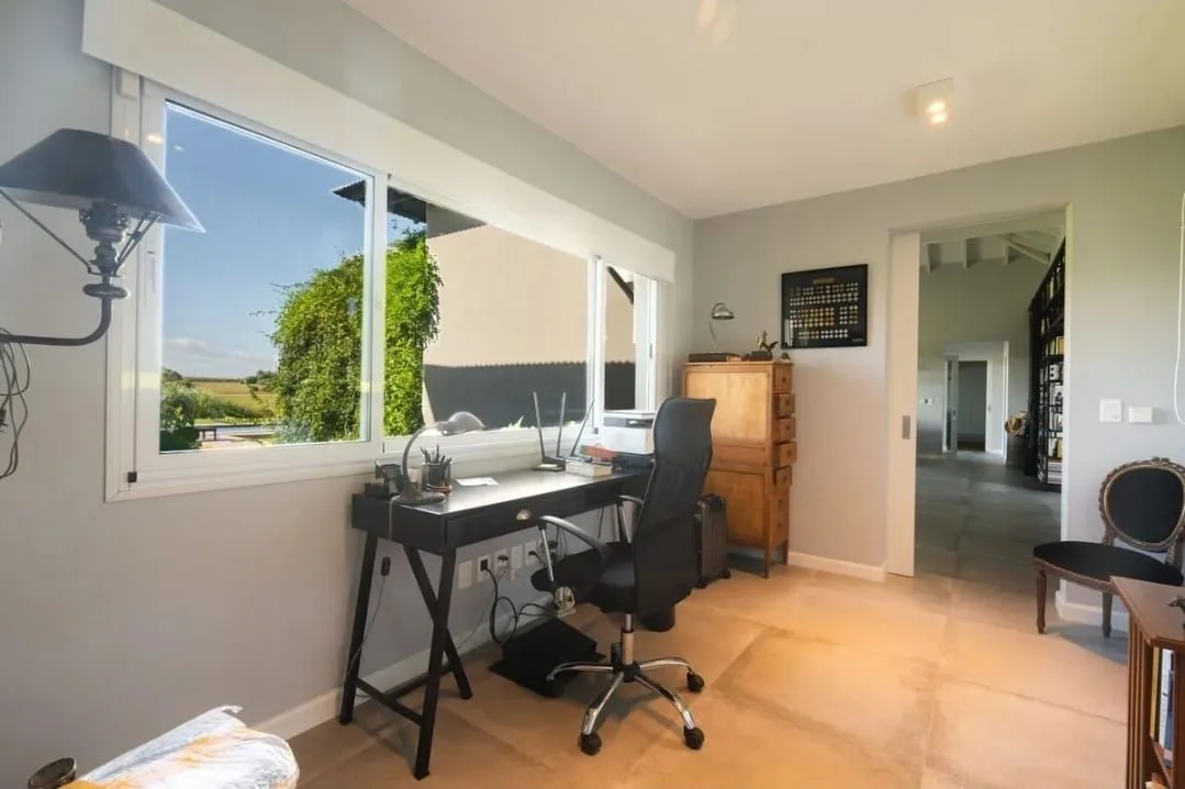 A la derecha de la casa se encuentra la suite principal, que tiene un generoso vestidor, el baño de visitas, una pequeña oficina.