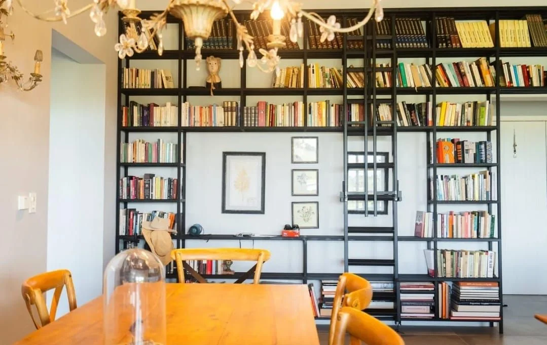 Sector principal, con un amplio y luminoso salón-comedor, complementado por una elegante biblioteca empotrada que añade un toque al espacio.