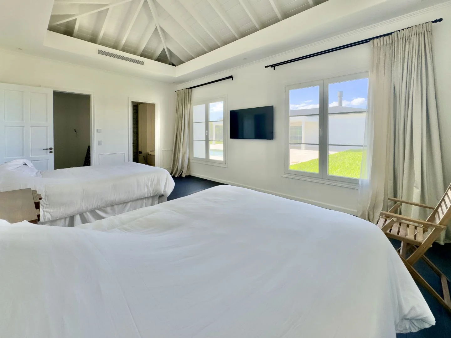 La propiedad se organiza en alas independientes, logrando una óptima distribución y máxima privacidad. La master suite se destaca por su amplitud, vestidor y baño compartimentado. Los dos dormitorios adicionales cuentan también con vestidor y baño en suite.