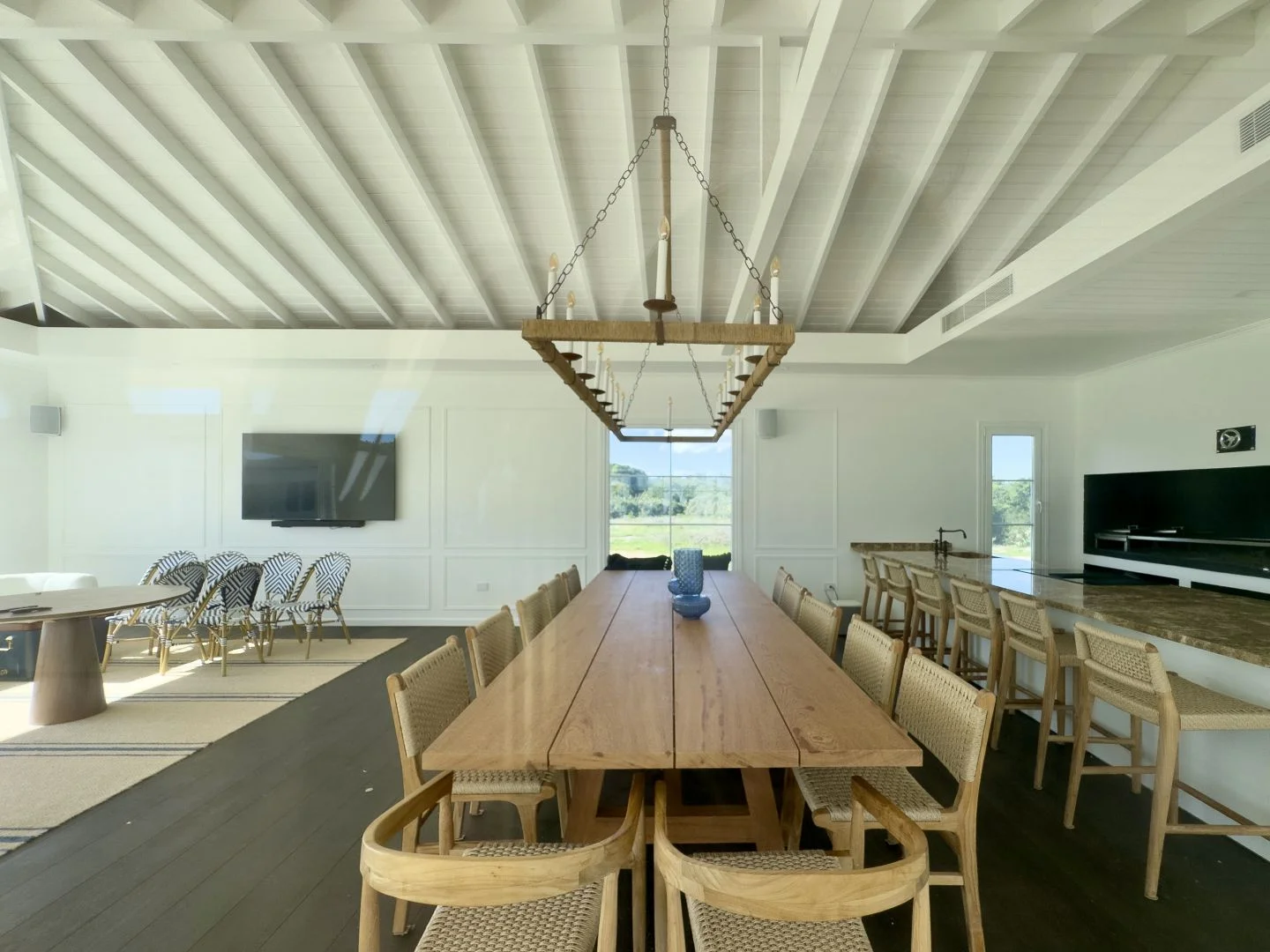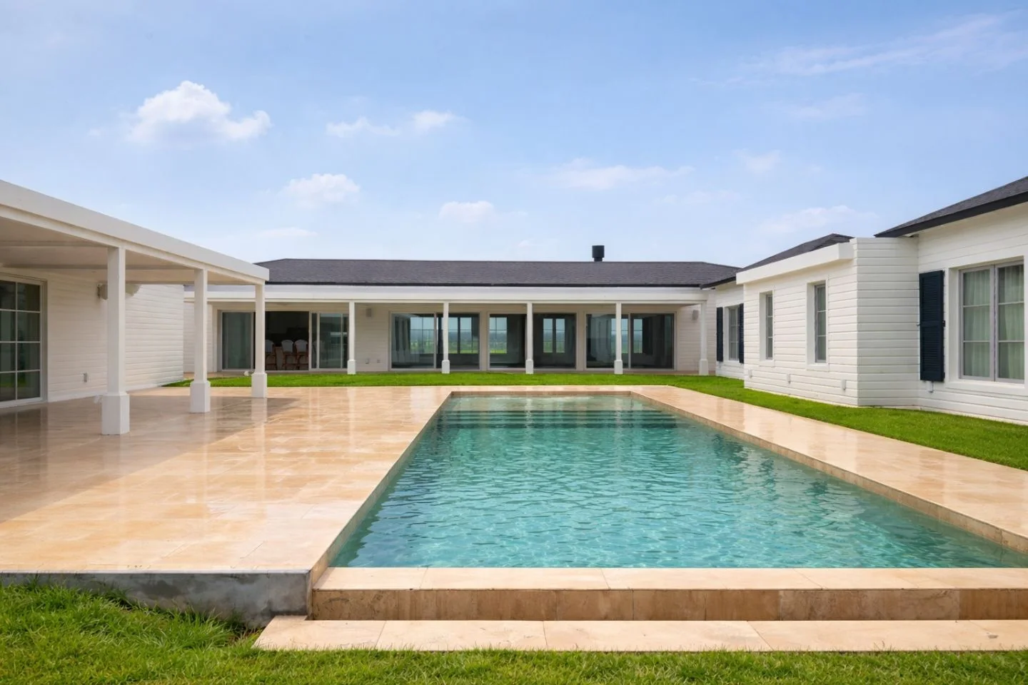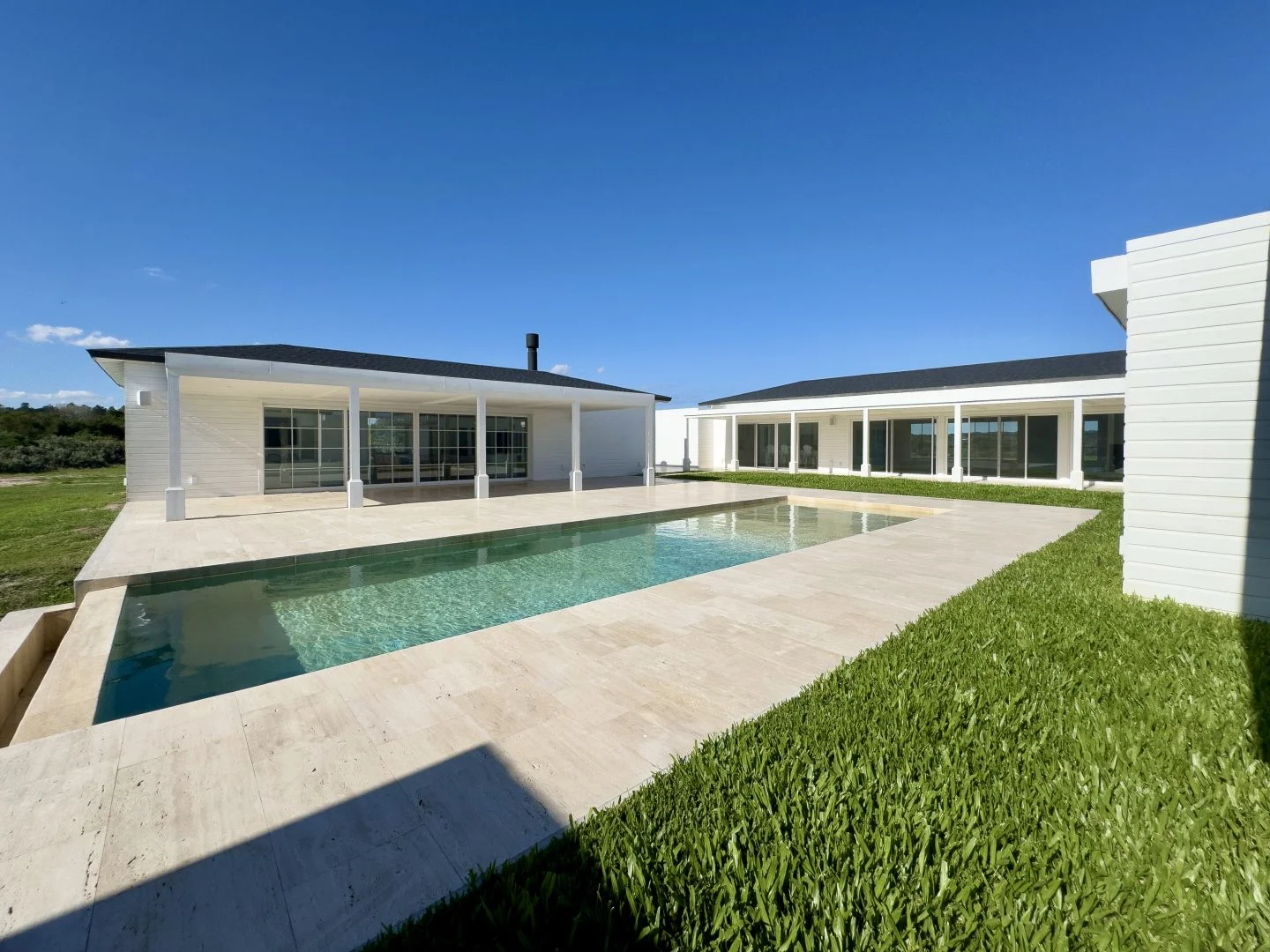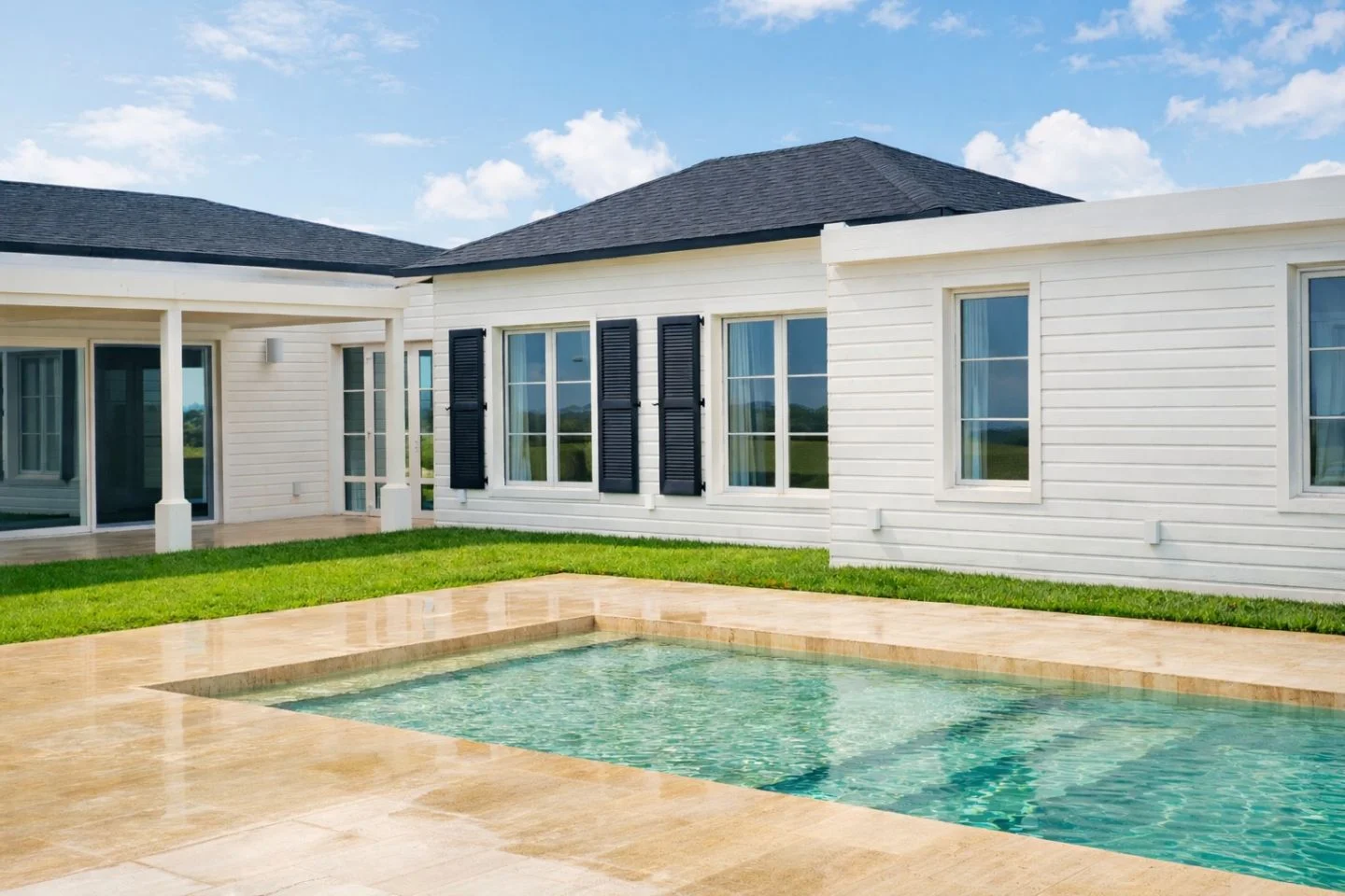 En el exterior, la casa se articula en torno a un encantador patio central con piscina, solárium, deck de madera y amplias galerías, generando un entorno ideal para el disfrute y la vida al aire libre.