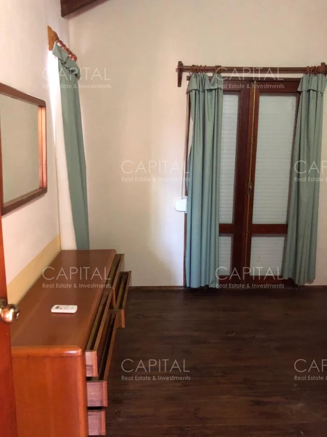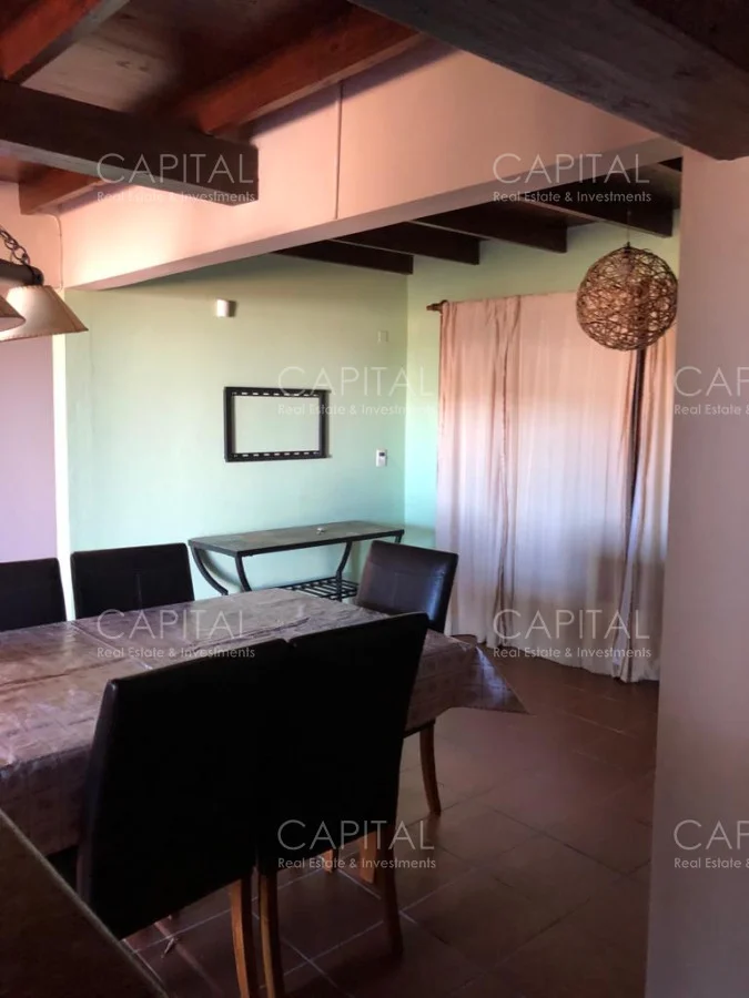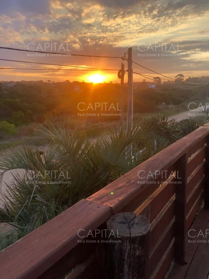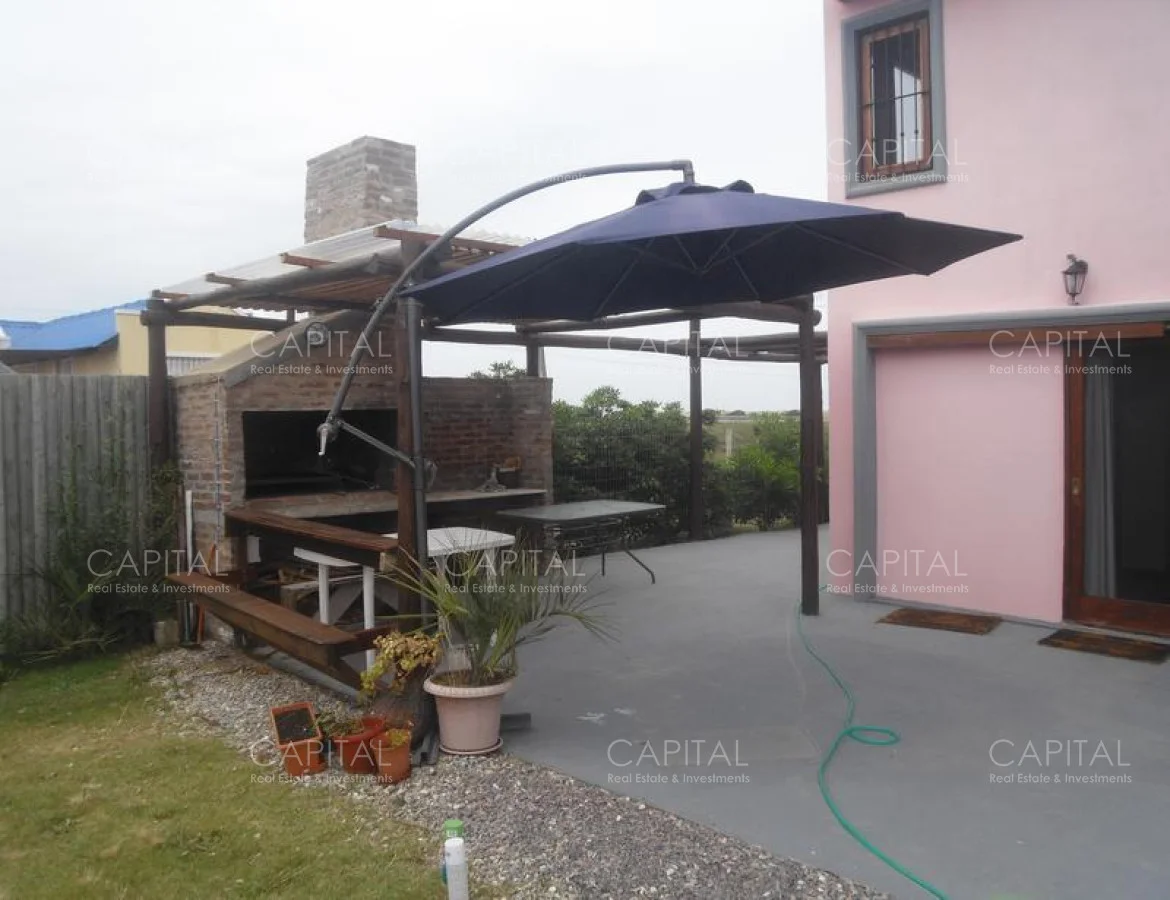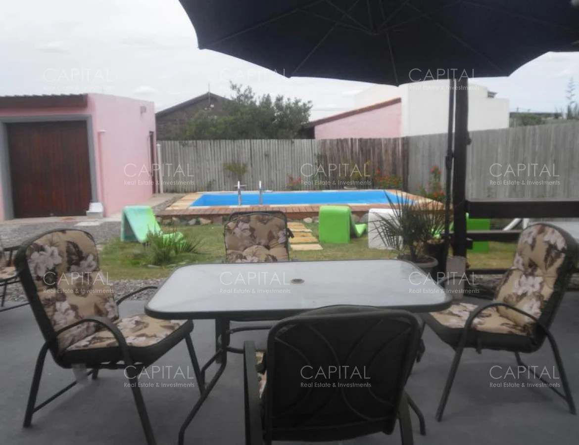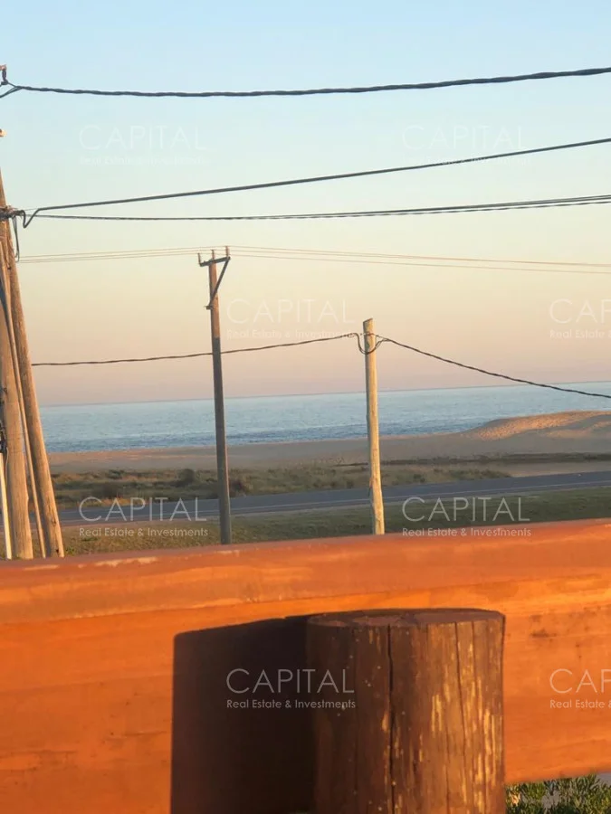 Casa a metros del mar y de ruta 10 en dos plantas. Planta alta; 2 dormitorios con aire acondicionado cada uno de ellos,1 en suite, estufa a leña, terraza al frente con vistas al mar. Planta baja; living comedor con salida al patio y el parrillero. Dos dormitorios. Patio cerrado. cortinas enrollar y rejas. Piscina y lavadero con baño.