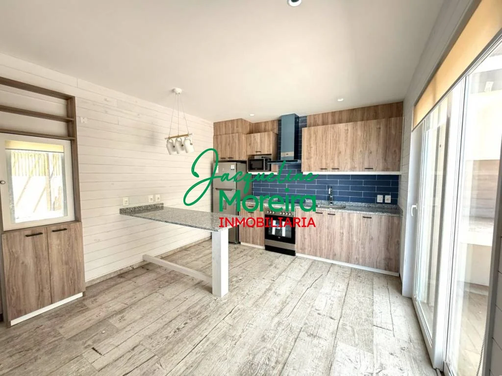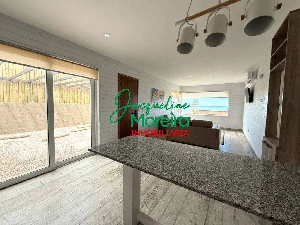 Al ingresar a la propiedad encontramos un amplio living-comedor y cocina, todo en un mismo ambiente, con bellísimas vistas al mar, calefaccionado por equipo split de aire acondicionado. Cocina totalmente equipada con muebles aéreos y bajo mesada de madera hechos a medida, mesada de granito gris, barra desayunadora.