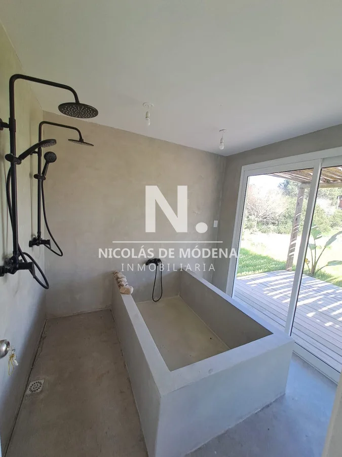 • 1 baño completo tipo spa con bañadera de hormigón, doble ducha y salida directa al deck