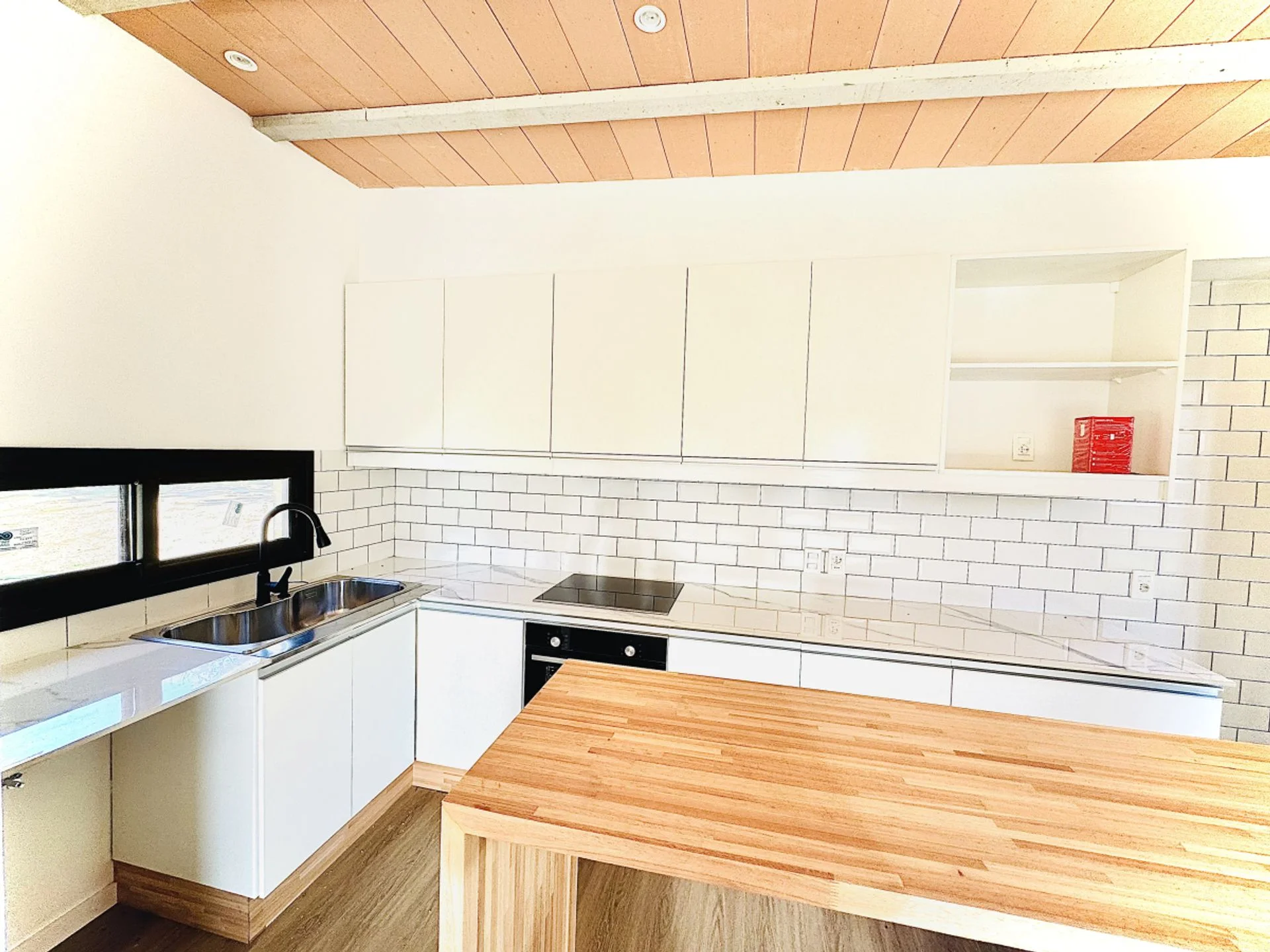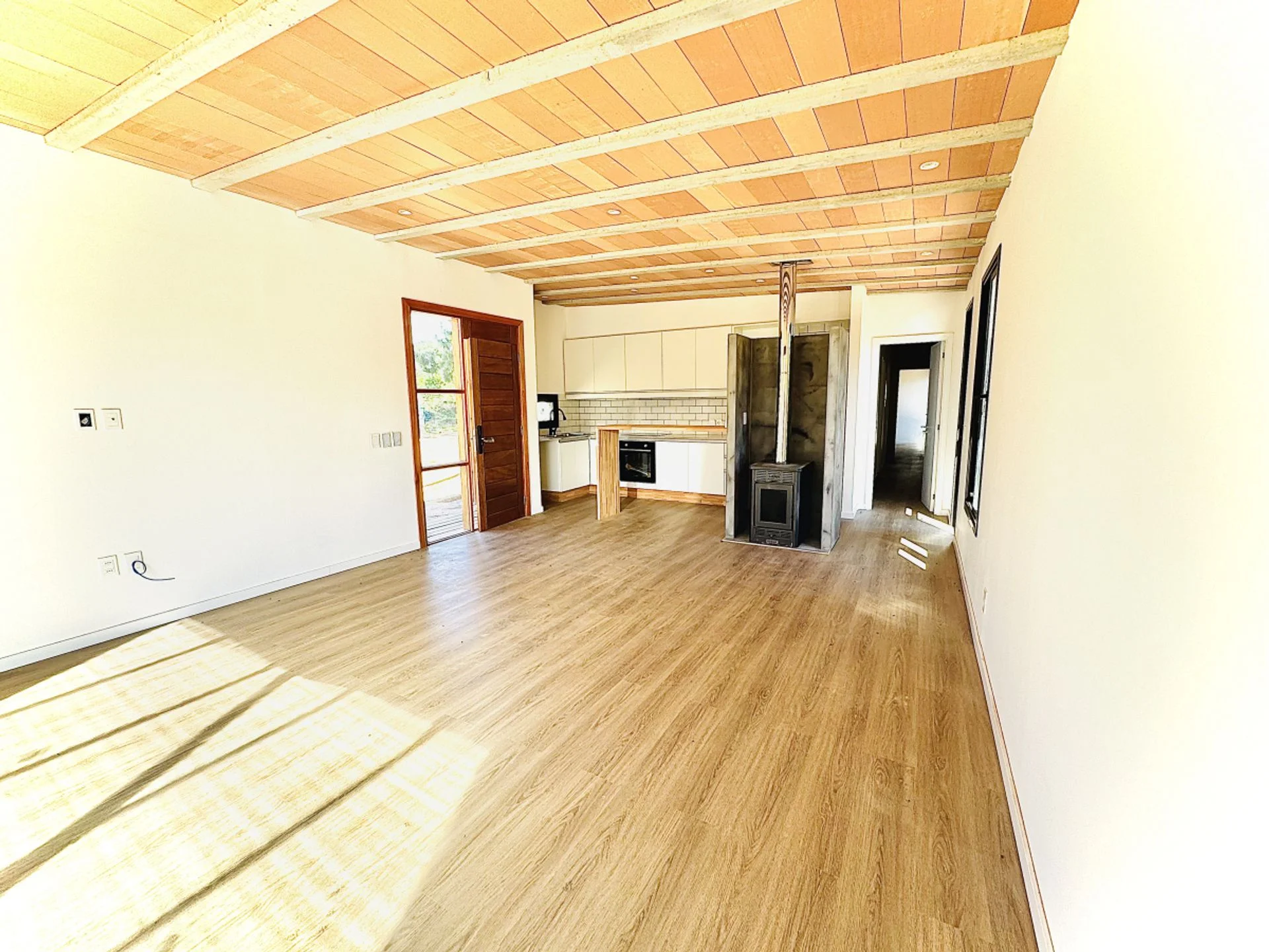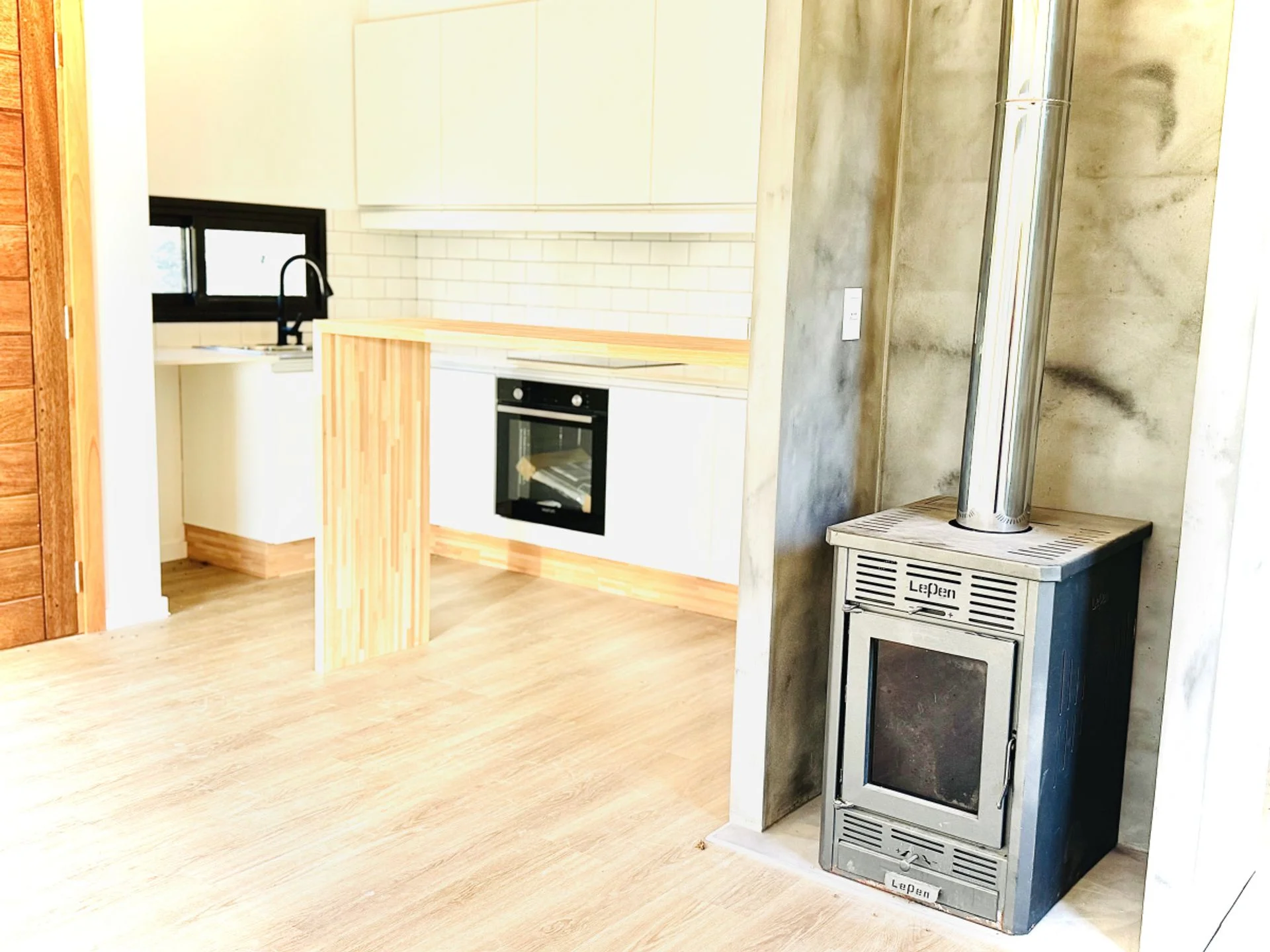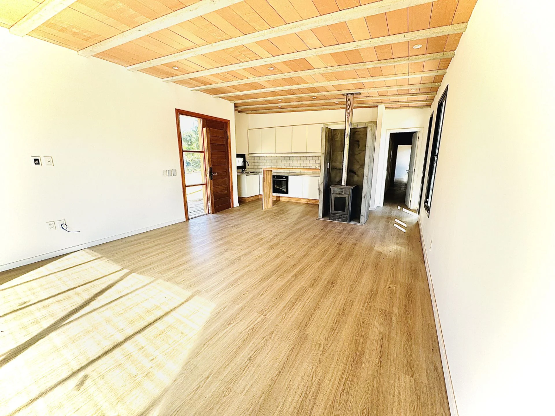 La cocina integrada al living comedor, crea un ambiente cálido y acogedor, perfecto para compartir momentos inolvidables con familia y amigos. Además, está equipada con cocina eléctrica, anafe, horno y una campana extractora, todo lo necesario para que despiertes al chef que llevas dentro.
