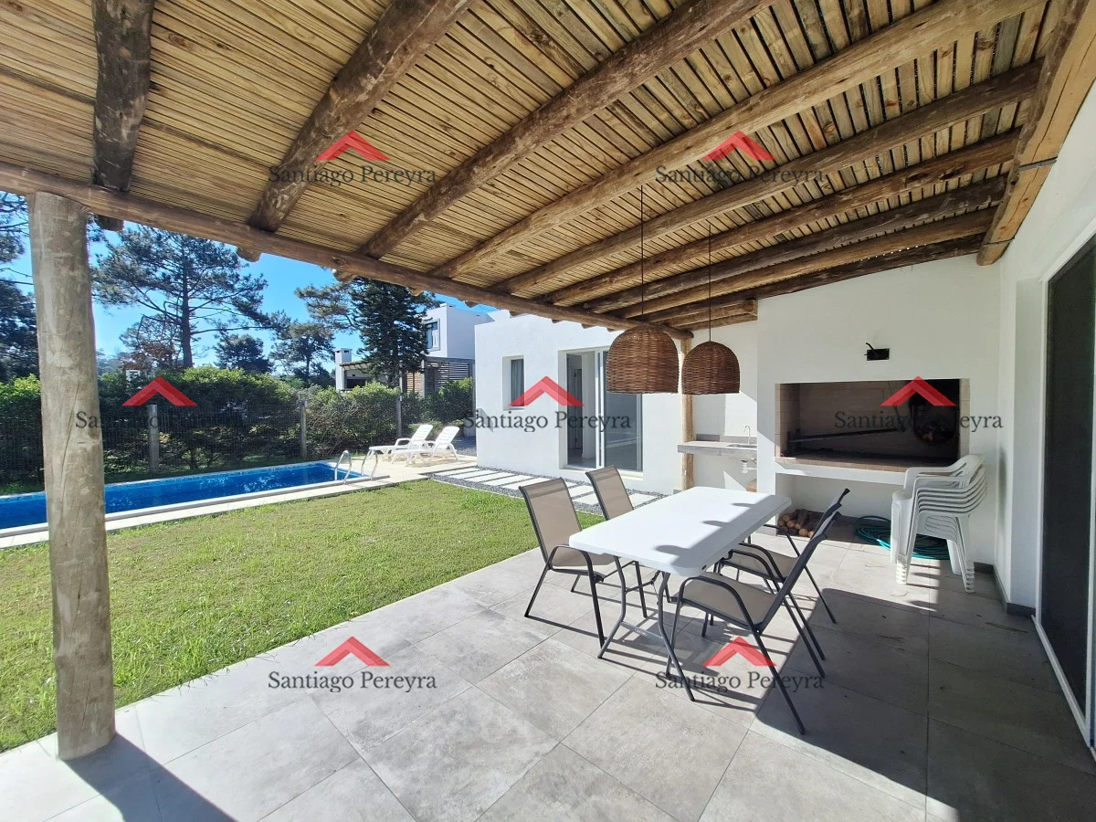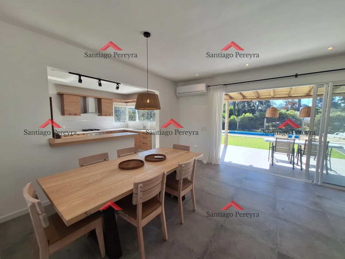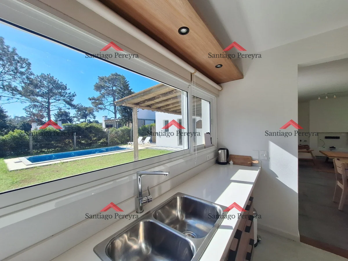 Amplia y cómoda casa de construcción tradicional en la barra, con excelente integración y circulación Living comedor al frente con amplia cocina integrada de fina carpintería y puerta de acceso a la cochera para mayor comodidad. Toilette de recepción. Tres dormitorios, principal en suite con vestidor. Piscina y parrillerro. Referencia Interna : Tera-15308