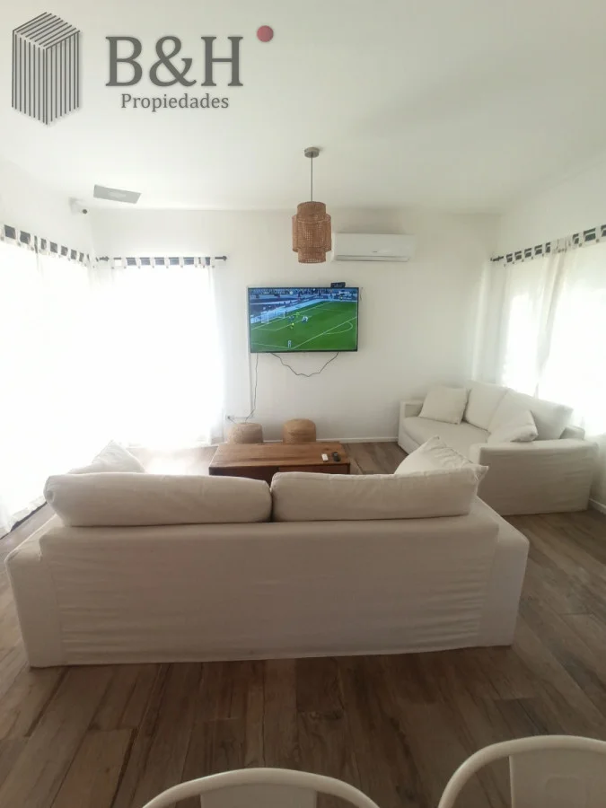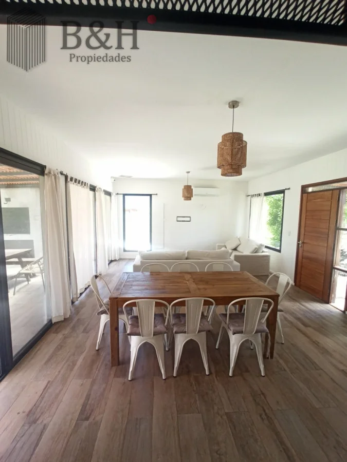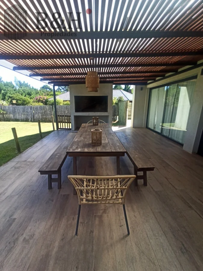 Casa en La Residence - Punta del Este Cuenta con 3 Dormitorios 3 Baños 1 Suite, vestidor, con capacidad para 6 personas Baño social Cocina : se encuentra semi-Integrada al Living Comedor. Este, a su vez esta integrado a comoda galeria con parrillero techado. Equipamiento : Anafe - Microondas - WiFi - Heladera Con Freezer - Aire Acondicionado - Smart TV - Horno - Placard en dormitorios - Placard en cocina - Campana - Lavavajillas, Lavarropas Agua presurizada DirecTv Piscina Terreno : 820 m2 Edificado : 160 m2 Consulte con nuestros asesores. Referencia Interna : Tera-5971
