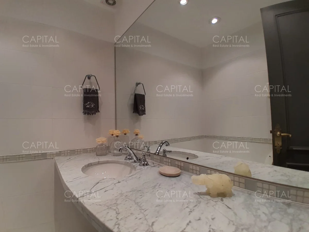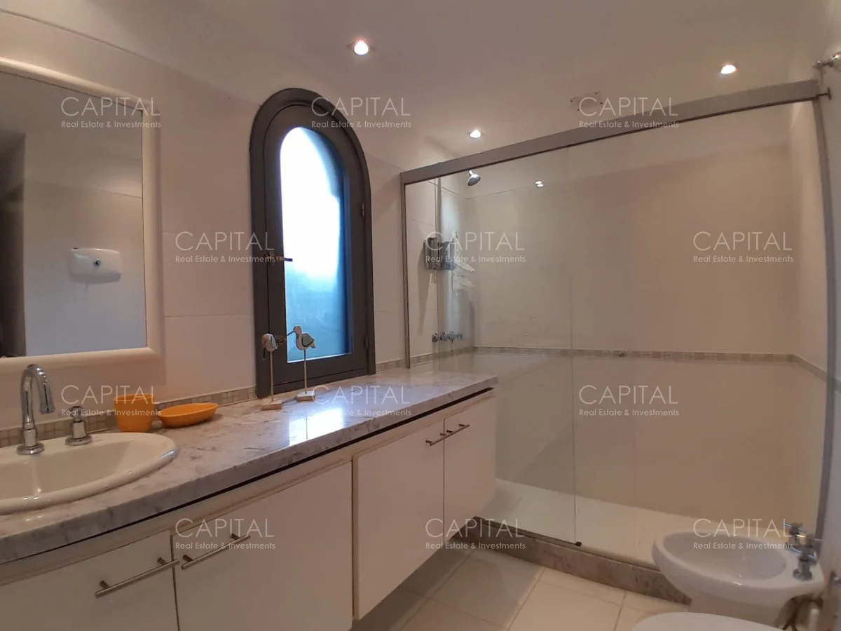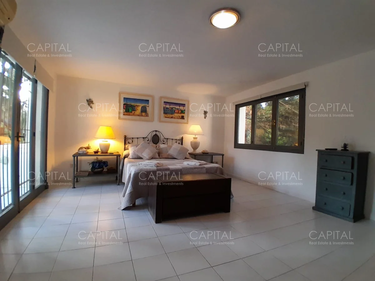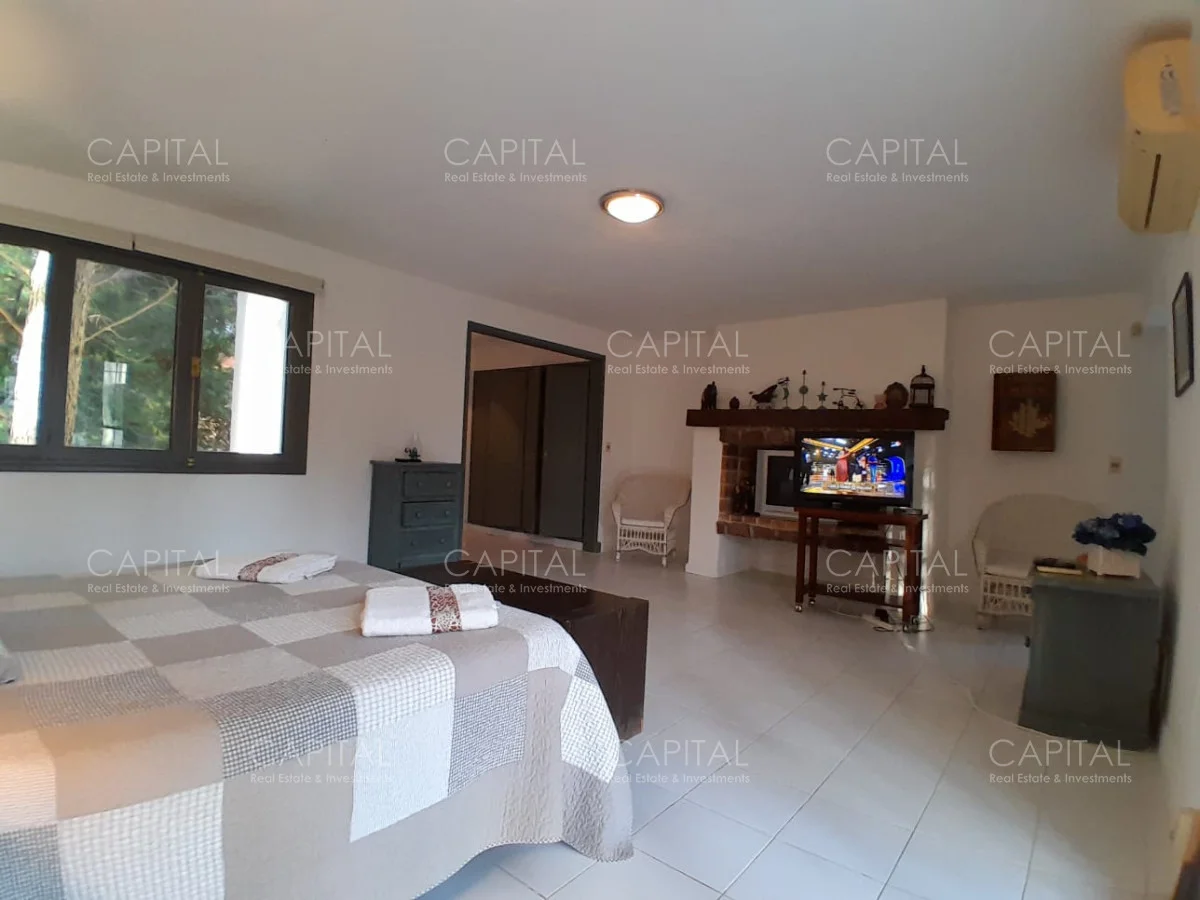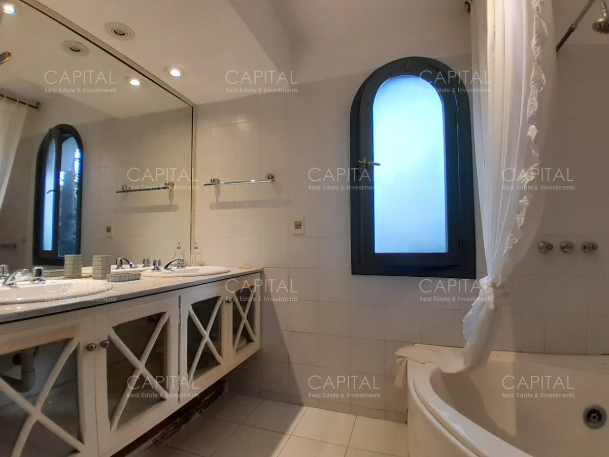 En un lote de 3400 m2 esta espléndida propiedad cuenta con un espacioso living con hogar a leña de alto rendimiento y grandes ventanales que permiten disfrutar el jardín desde el interior de la casa. Comedor diario y estar. Cinco dormitorios en suite, más toilette y escritorio. Amplia cocina definida, completamente equipada.