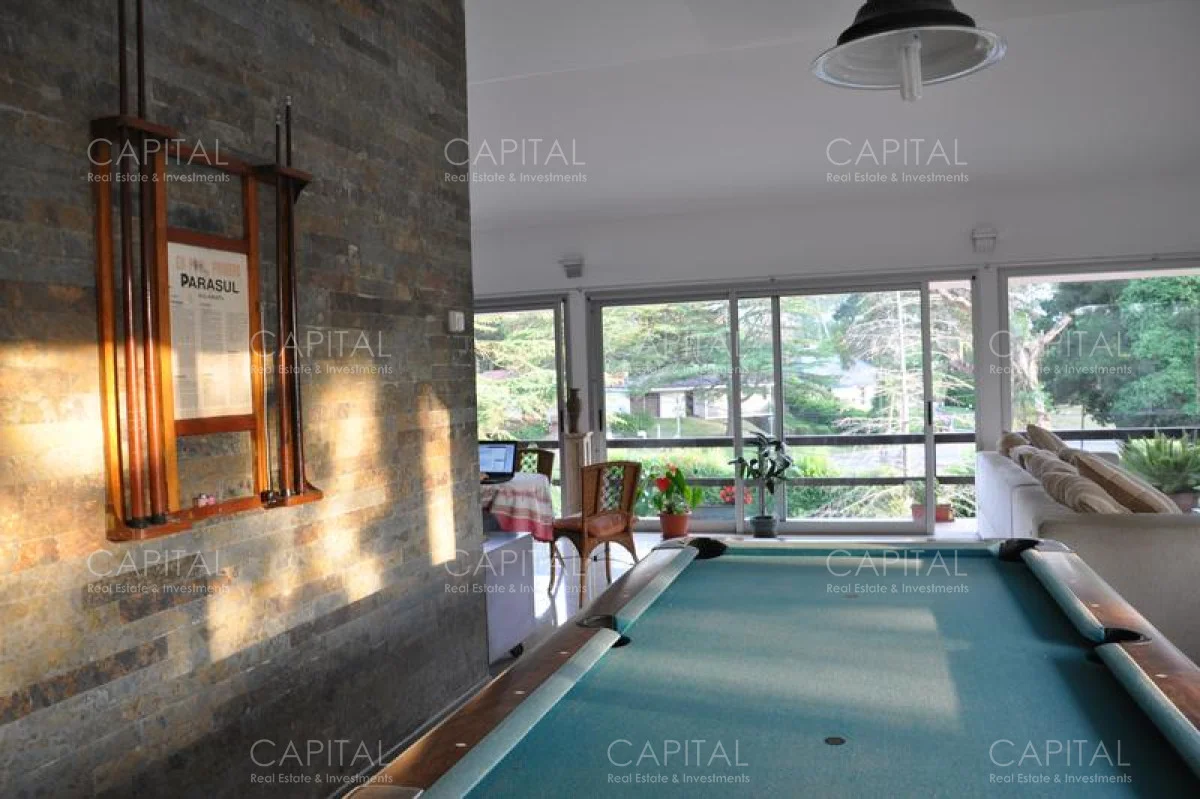 Casa de cinco dormitorios amplios con terrazas, tres en suite, dependencia de servicio, piscina, playroom con amplio living aterrazado con pool y bar, parrilla abierta, barbacoa, a cuatro cuadras del mar. Equipamiento de última generación.