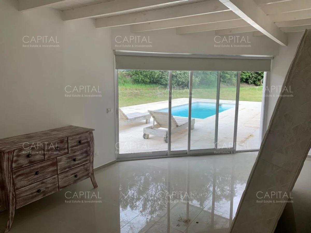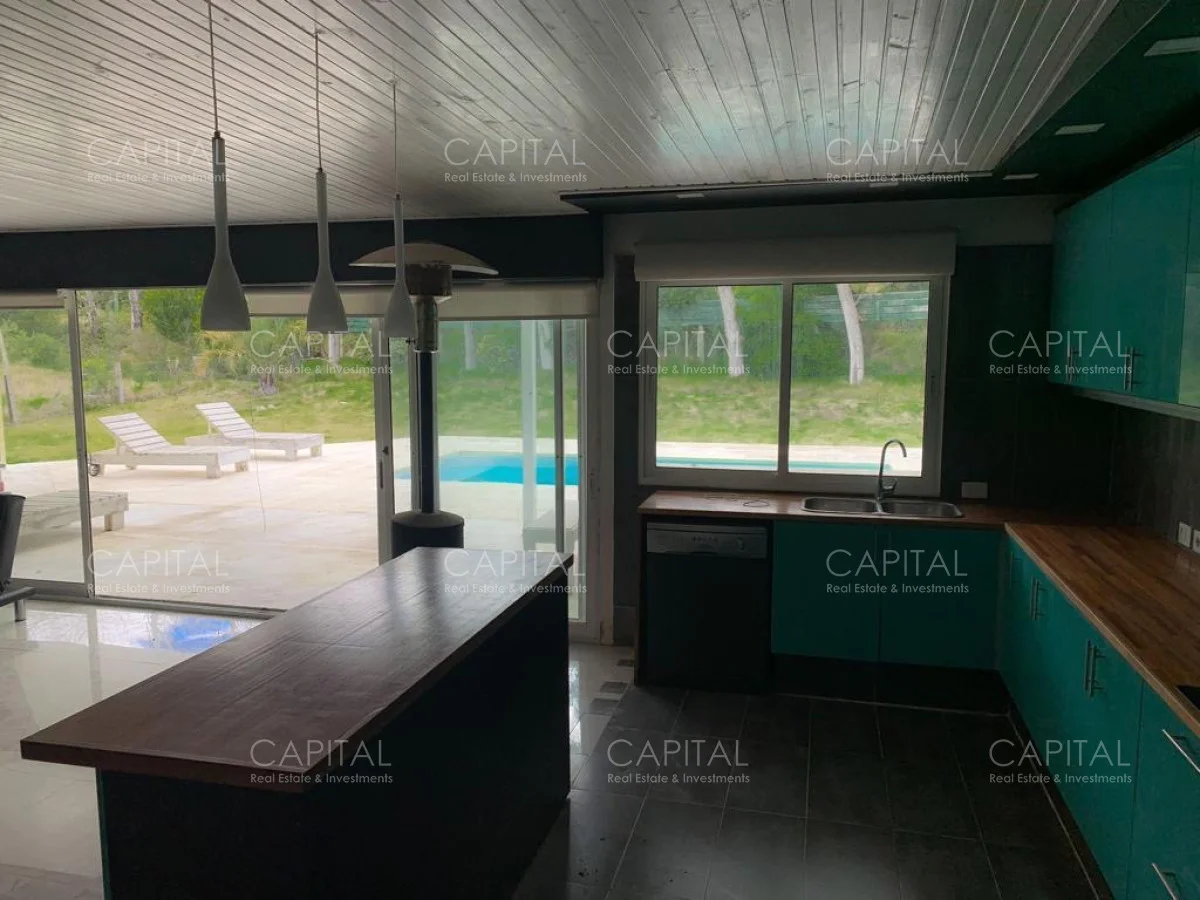 Casa desarrollada en una sola planta, 4 dormitorios en suite, estufa a leña, parrillero estilo barbacoa y piscina. Casa en Verde Mora - Punta Ballena Terreno : 1072 m2 Edificado : 272 m2 Consulte con nuestros asesores. Referencia Interna : Tera-38962