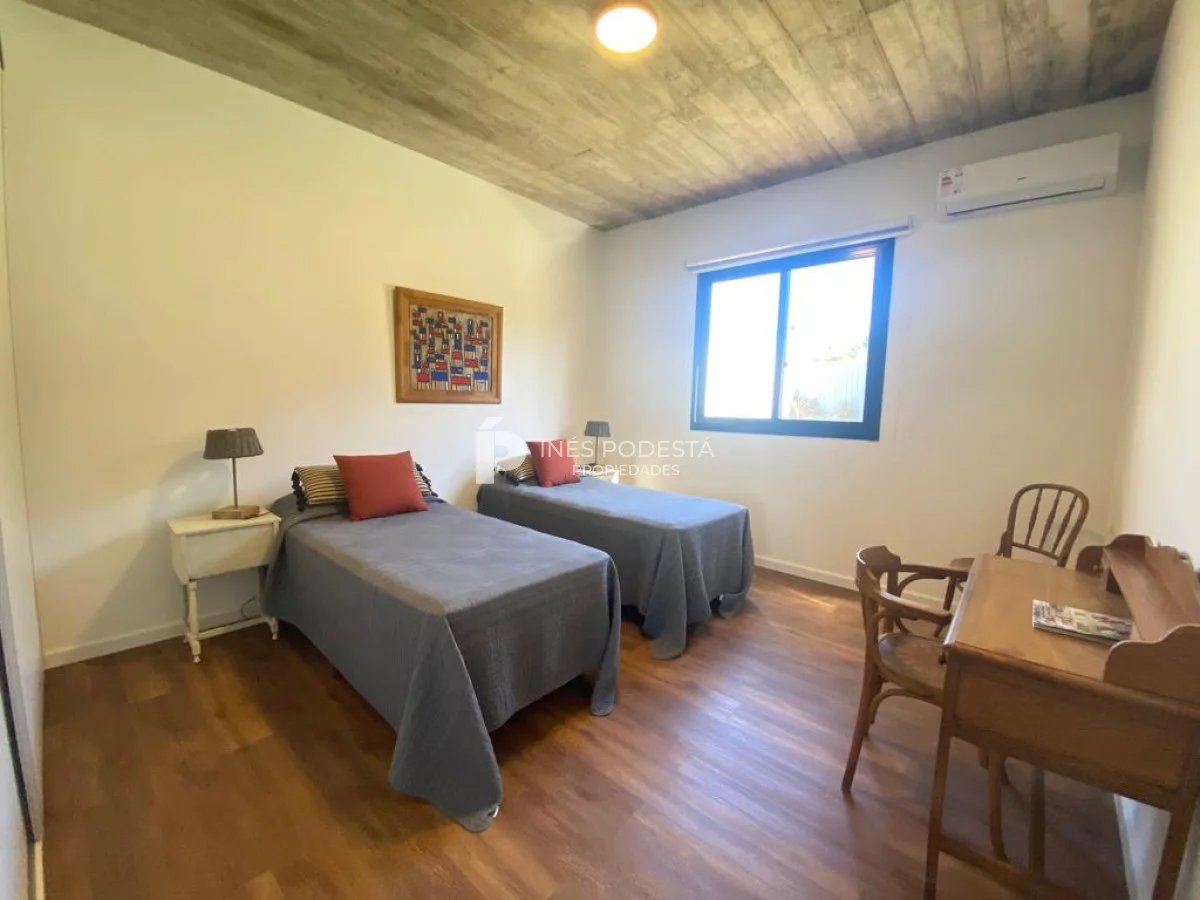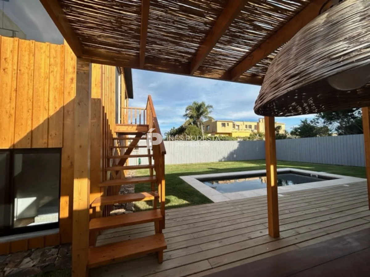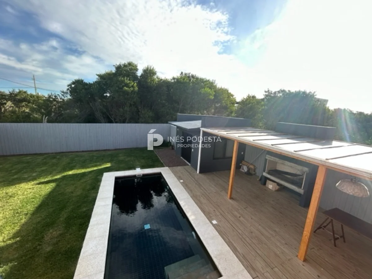 La propiedad esta ubicada a una cuadra de la playa y tiene 200 m2 edificados en dos plantas. Muy linda propiedad y de excelente construcción. Planta alta: amplio living comedor con estufa de alto rendimiento, cocina integrada, toilette, terraza con piso de lapacho y vista al mar, 3 dormitorios amplios, 2 baños (principal en suite con vestidor), piscina, parrillero techado, depósito para lavadero, totalmente cercada, soleada, aires acondicionados, losa radiante en baños.