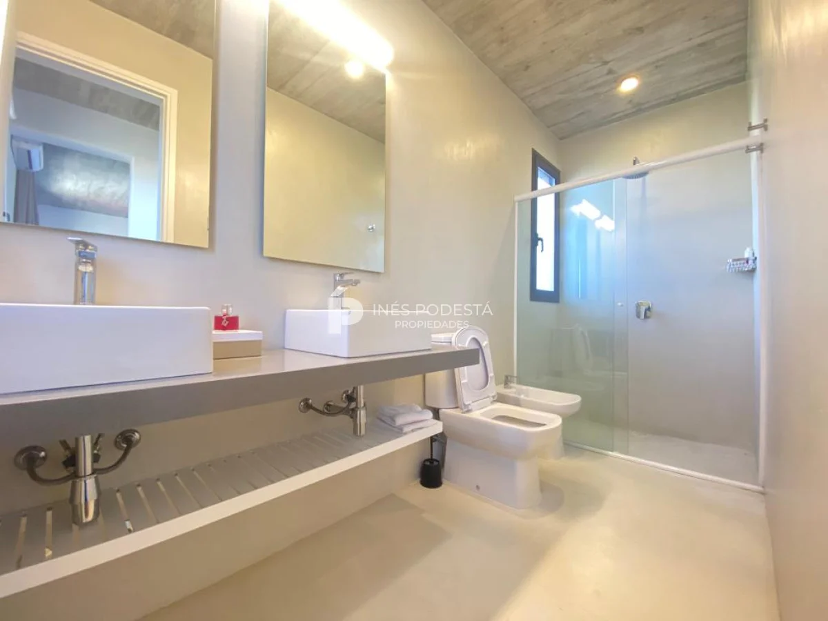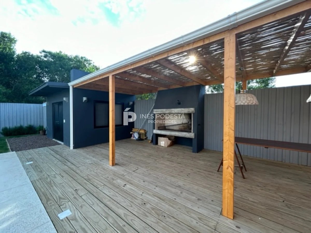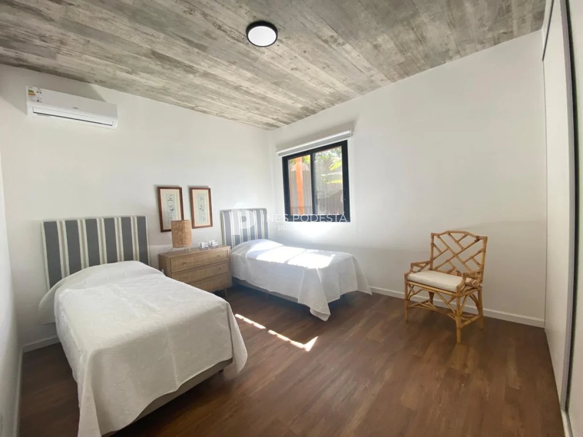 La propiedad esta ubicada a una cuadra de la playa y tiene 200 m2 edificados en dos plantas. Muy linda propiedad y de excelente construcción. Planta alta: amplio living comedor con estufa de alto rendimiento, cocina integrada, toilette, terraza con piso de lapacho y vista al mar, 3 dormitorios amplios, 2 baños (principal en suite con vestidor), piscina, parrillero techado, depósito para lavadero, totalmente cercada, soleada, aires acondicionados, losa radiante en baños.