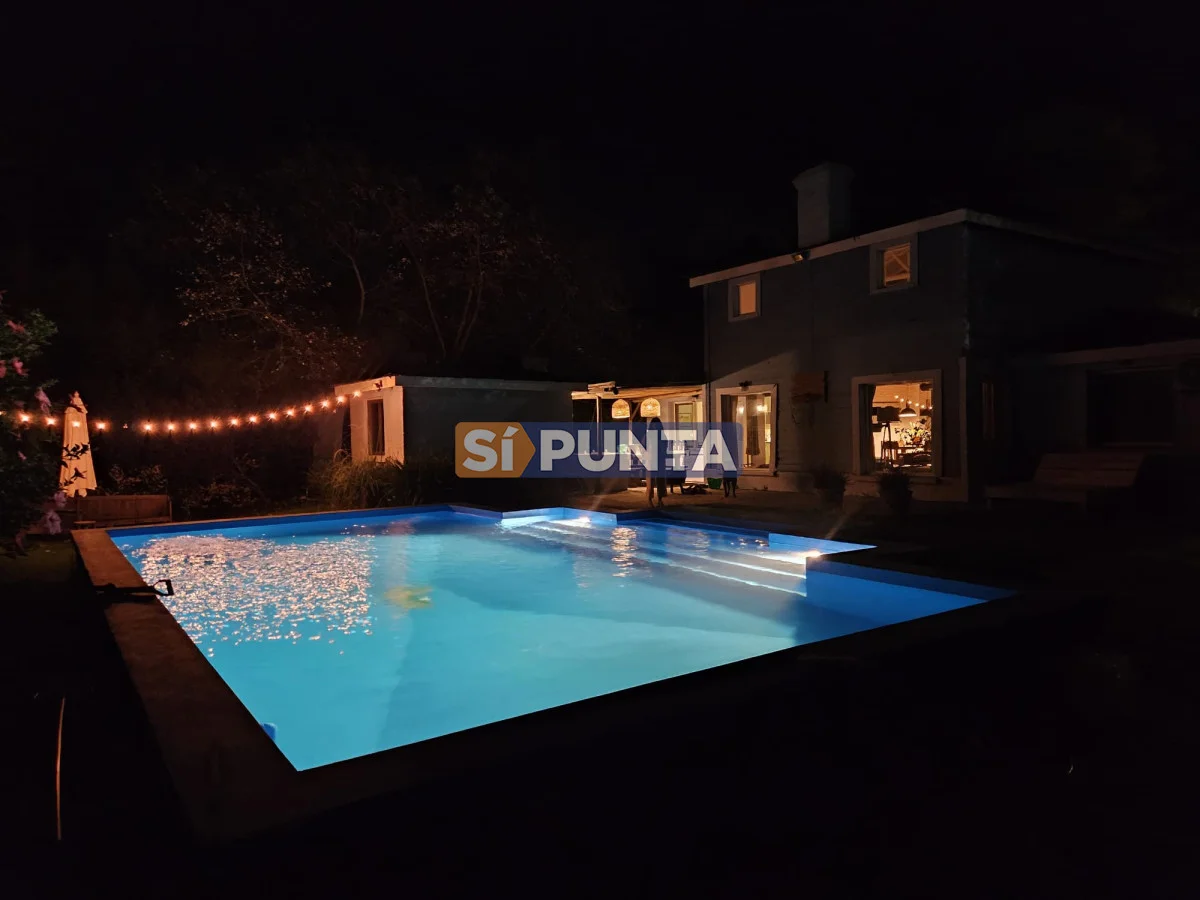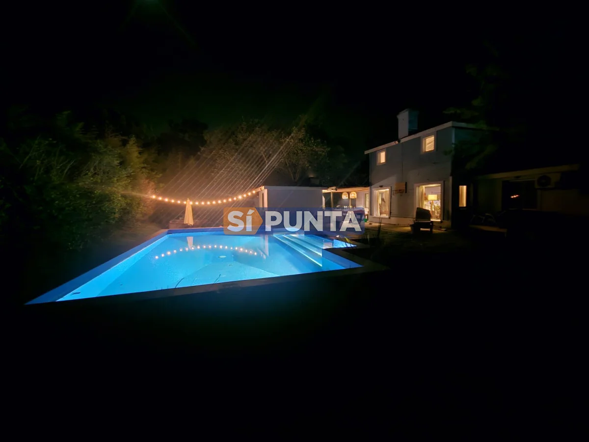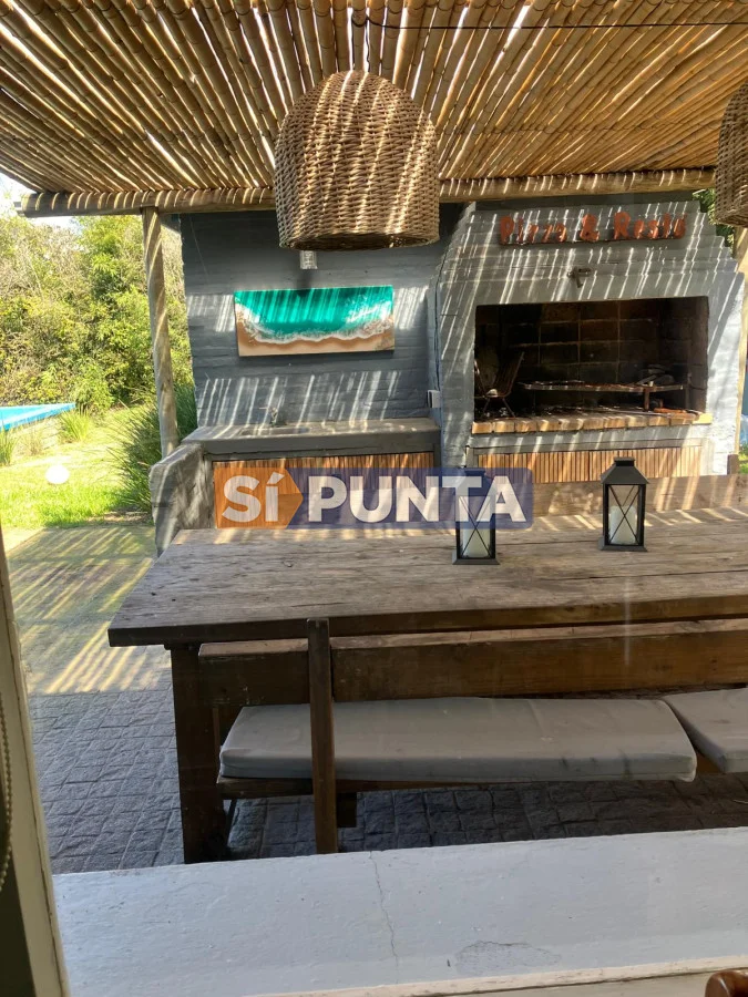 Preciosa casa ubicada a pocas cuadras del mar en La Barra. Rodeada de árboles. Comodidades: - Amplio y luminoso living comedor - Cocina totalmente equipada - 3 Dormitorios, (1 suite) - 2 Baños - Dependencia de servicio completa - Parrillero techado con horno de barro - Piscina climatizada Referencia Interna : Tera-895