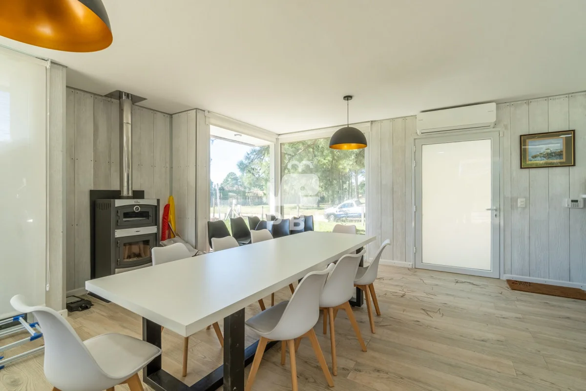 Posee todas las comodidades, amplio living comedor con estufa de alto rendimiento que conecta con un lido deck exterior con parrillero, ideal para cenas en familia.