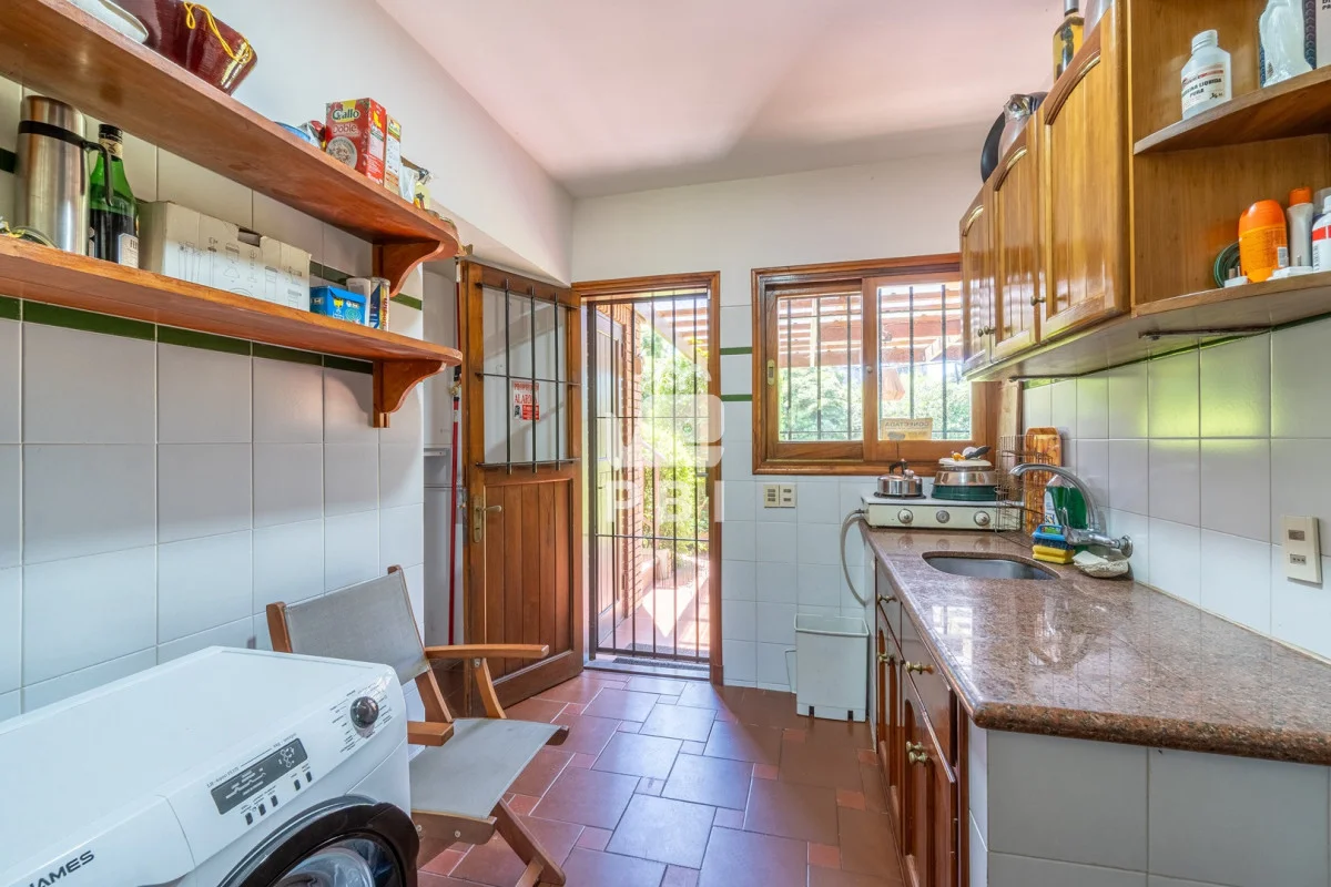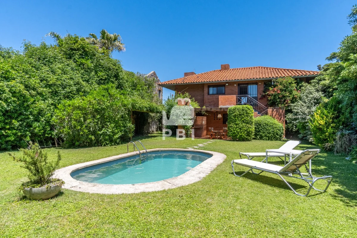 En planta baja cuenta con un acogedor living con estufa a leña, cocina definida, dos dormitorios, un baño completo y dependencia de servicio con baño. Además, dispone de lavadero, cochera, garaje con acceso interno y un gran jardín con piscina y parrillero techado, ideal para compartir en familia.