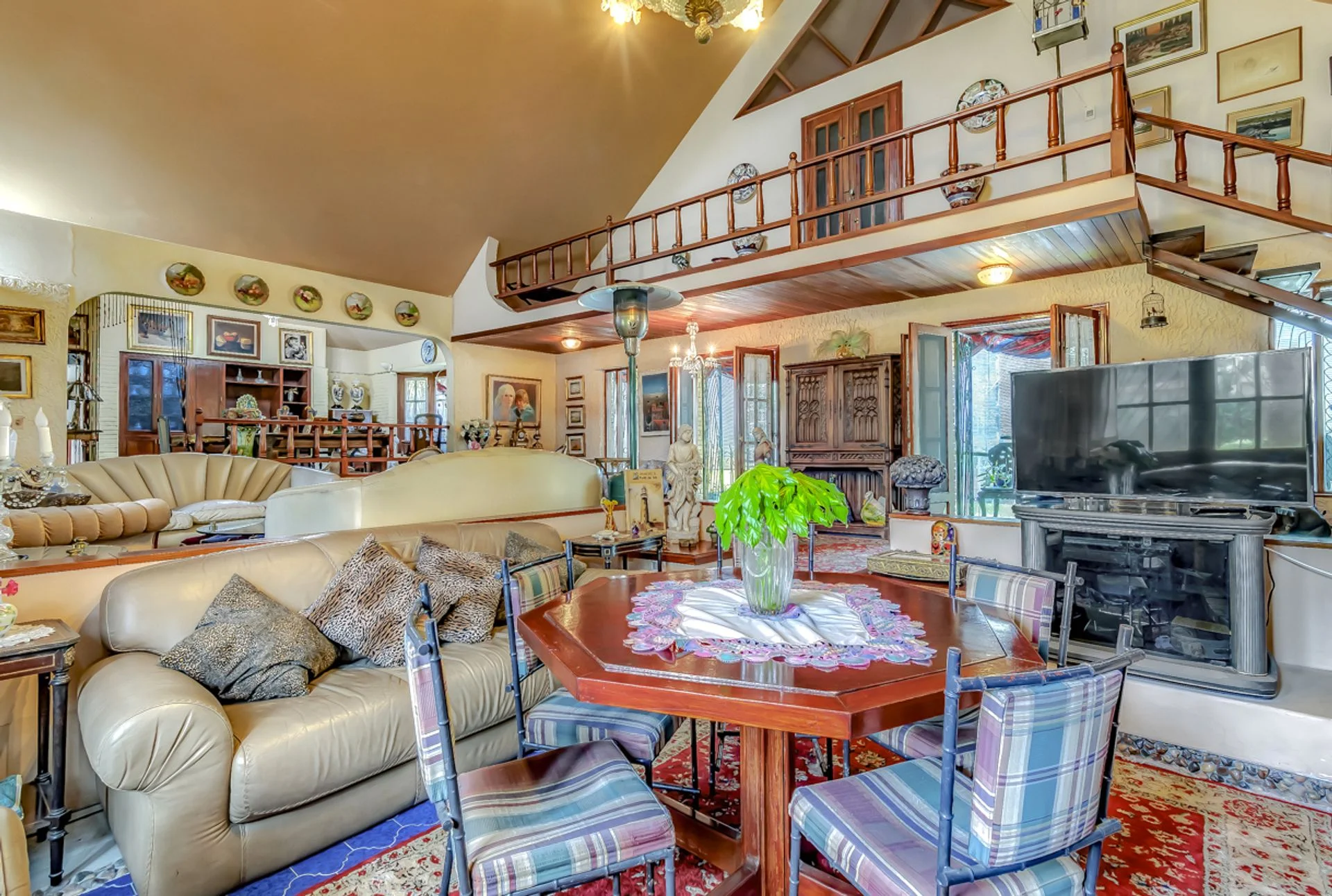 En el área social, el living se complementa con un altillo de 6 metros de largo, brindando un espacio extra que puede adaptarse como playroom, escritorio o biblioteca. Un detalle distintivo es la madera de cedro presente en toda la casa, que aporta calidez, elegancia y durabilidad.