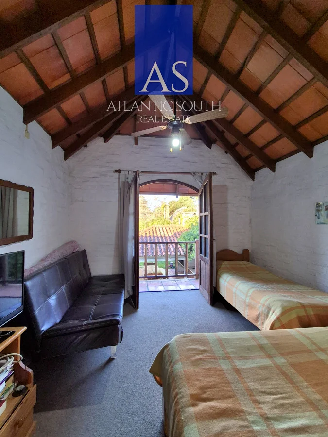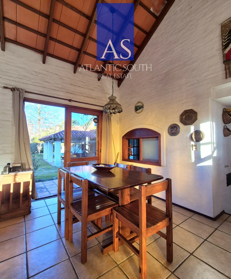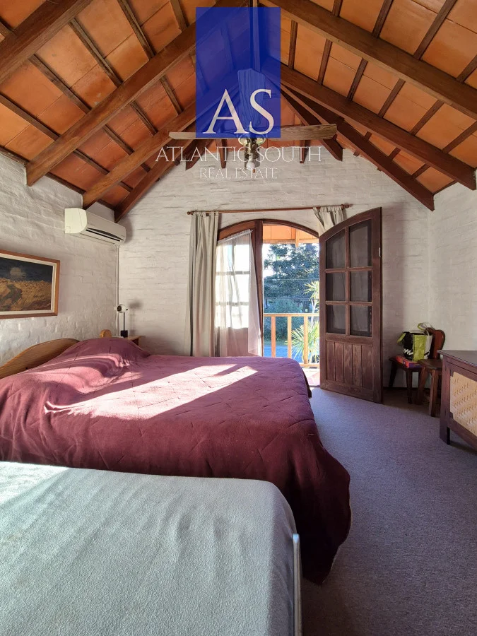 En planta baja se en cuentra un amplio living muy bien iluminado con estufa a leña, comedor con ventanal y acceso a jardín. Cocina definida con pasa-platos . Dormitorio amplio y baño completo. En planta alta se desarrollan dos dormitorios de muy buen espacio y balcones con hermosa vista panorámica de Pinares. Aire acondicionado en todos los dormitorios y living.