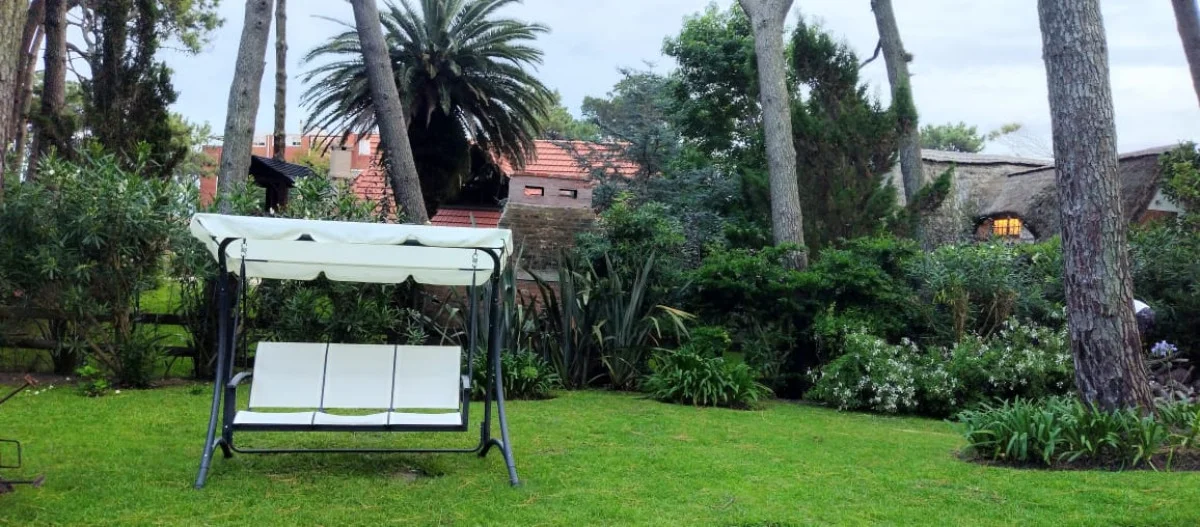 Se encuentra rodeada por un hermoso jardín verde, con piscina. Totalmente cercado.
