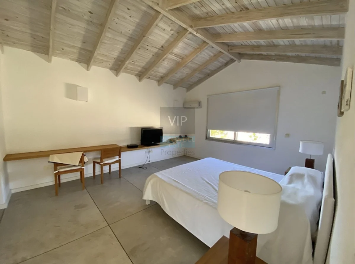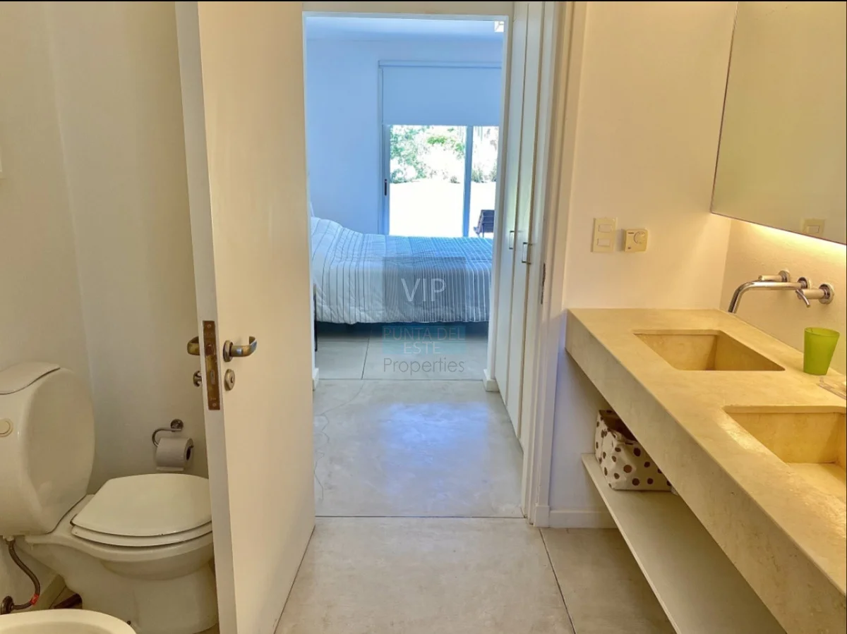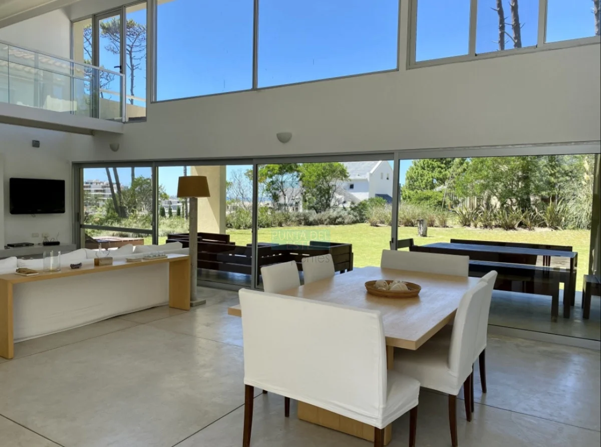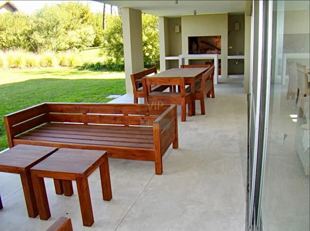 Plata baja: Cocina definida, living-comedor amplio con estufa a leña, ventanales que comunican al jardín, 1 dormitorio en suite, toilette, área de servicio y lavadero.