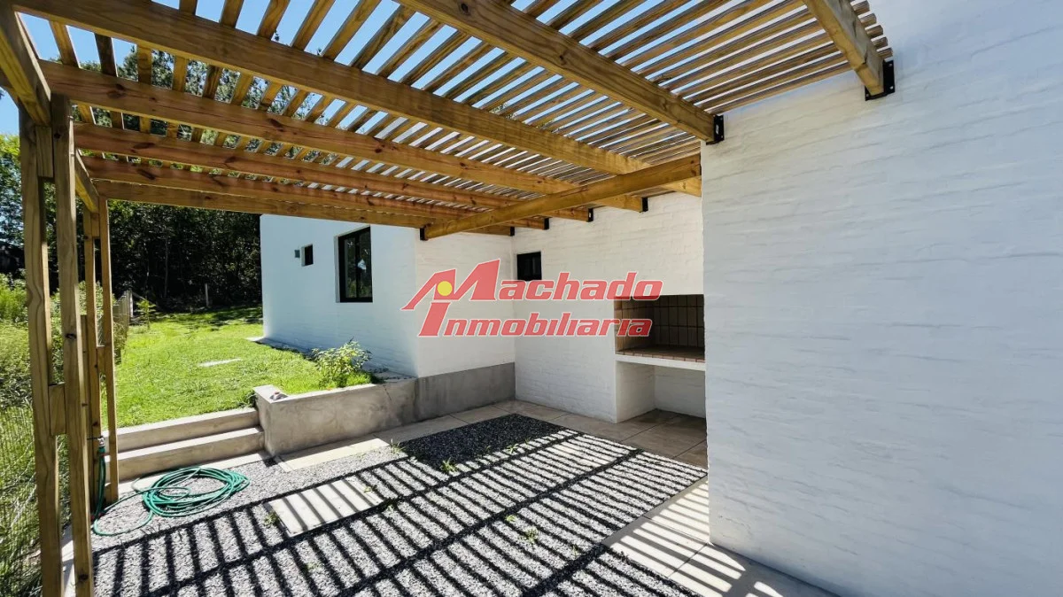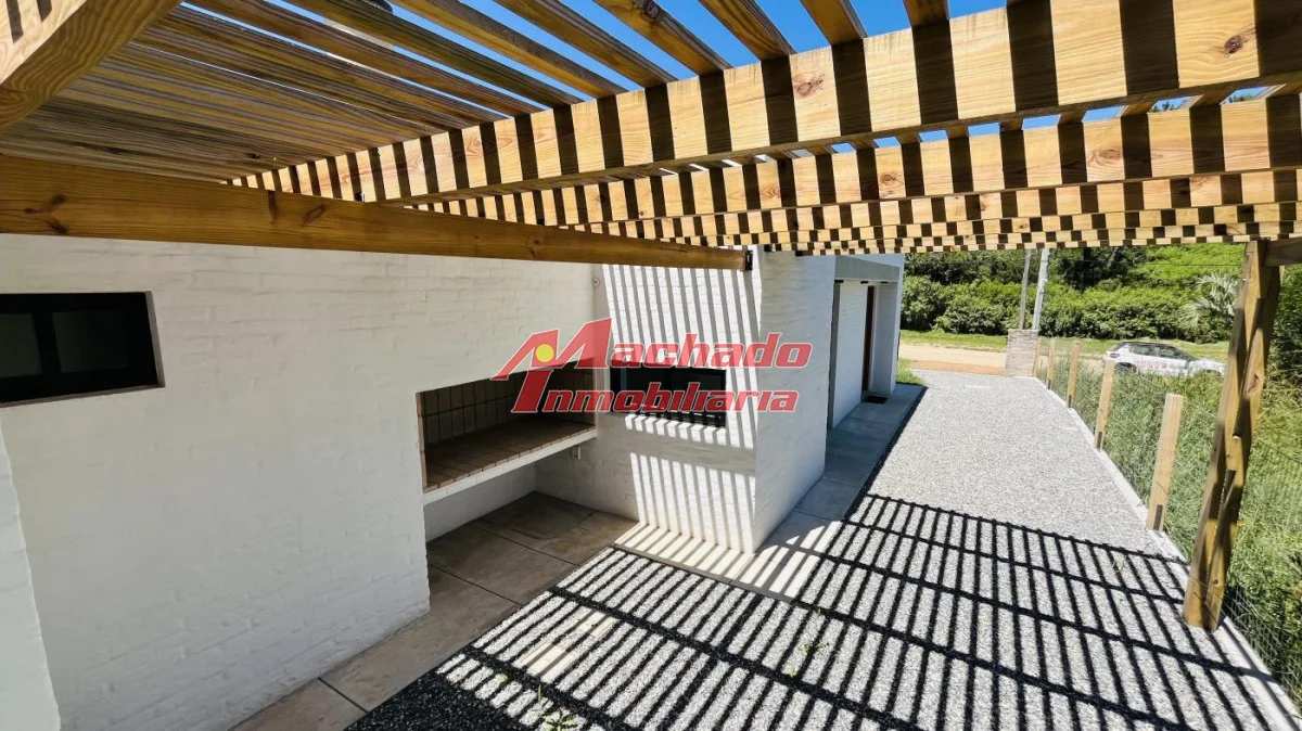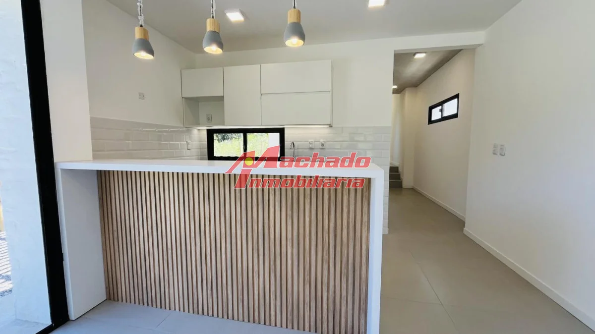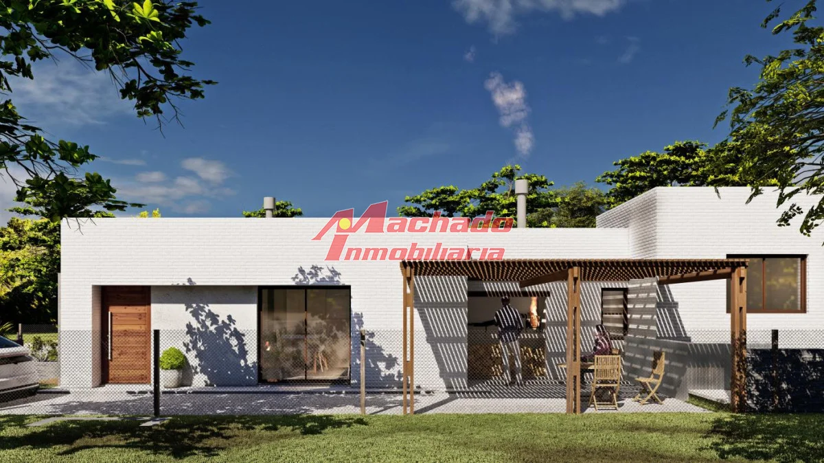 Distribuida en living-comedor, cocina semi integrada con barra, 2 baños (un toilette), 2 dormitorios y pérgola que integra el parrillero y la cochera.