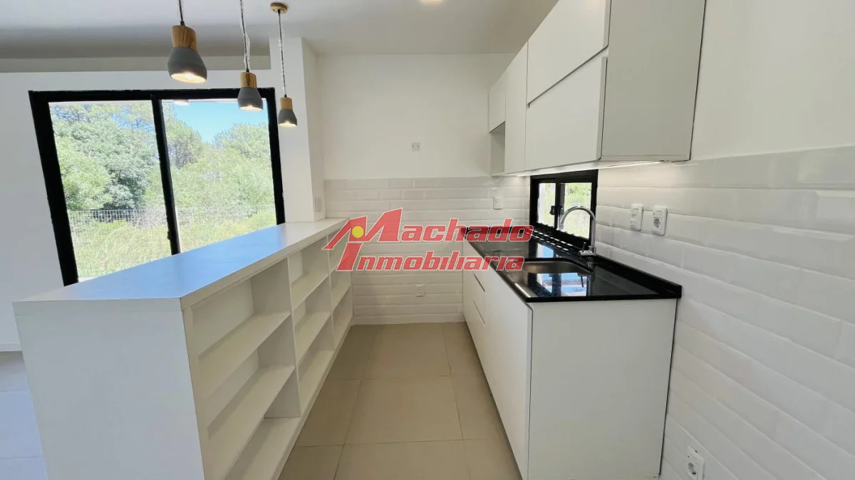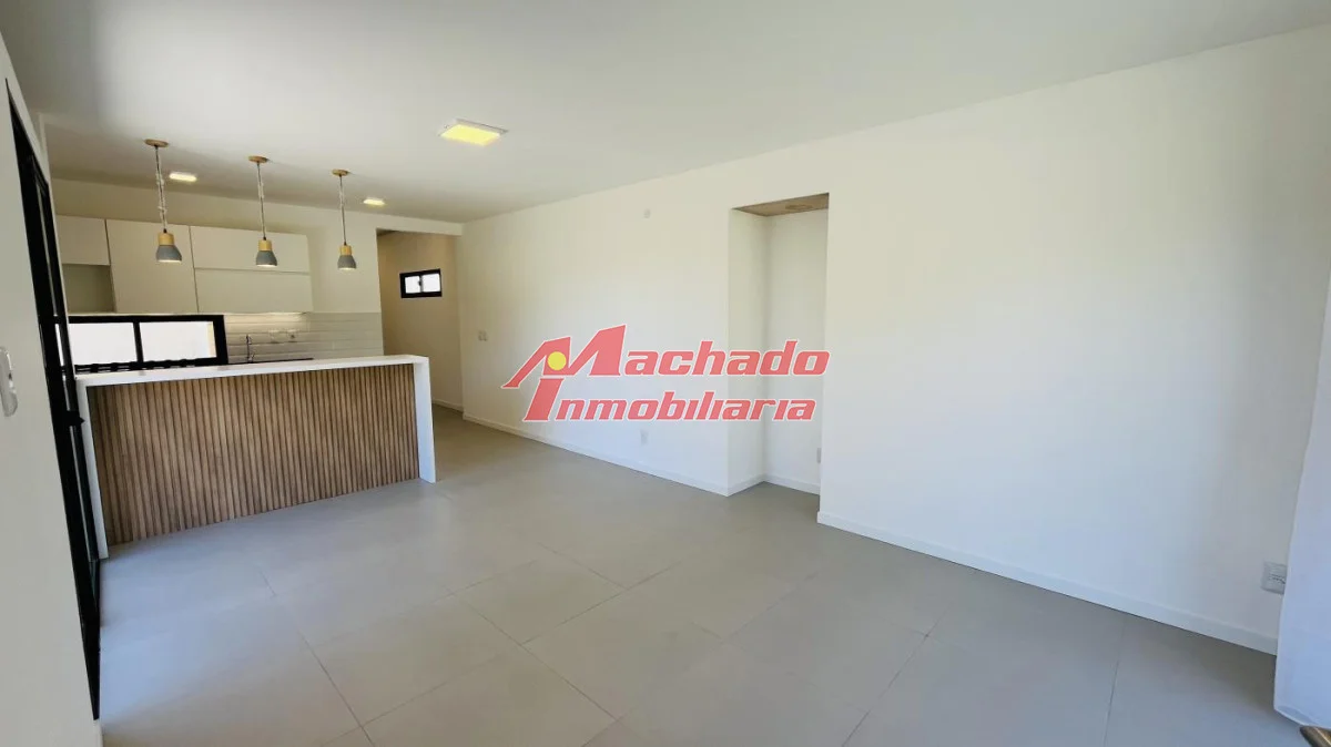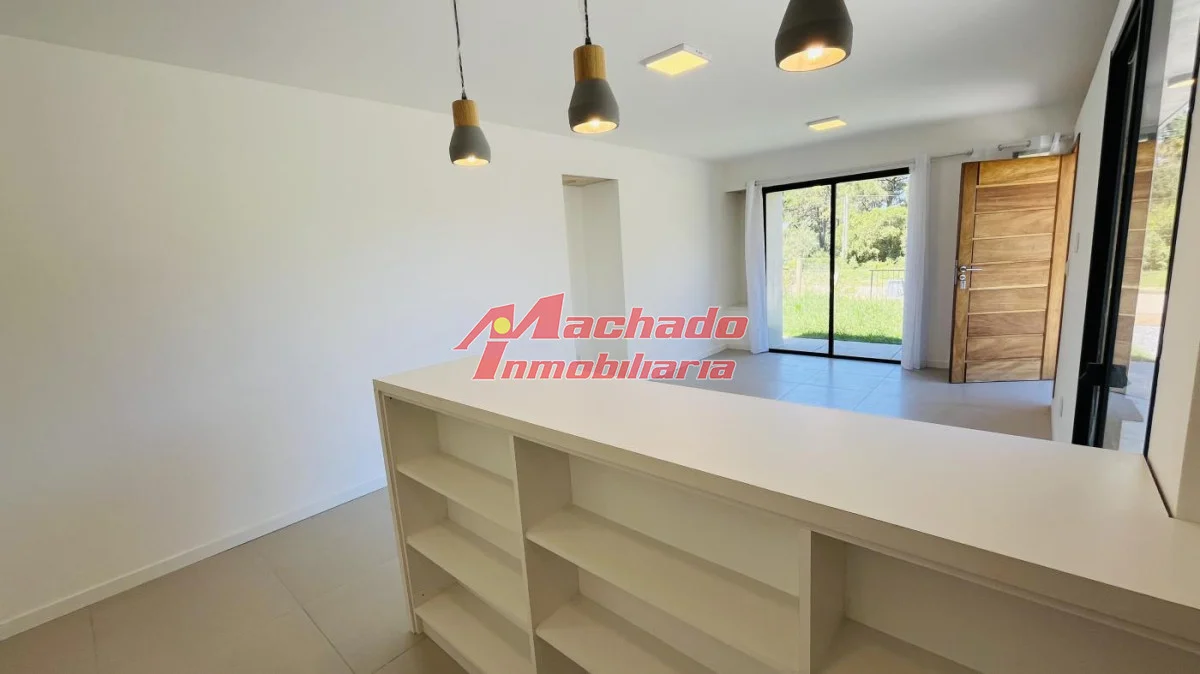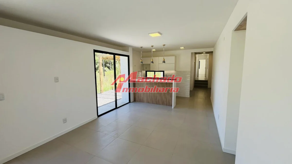 Distribuida en living-comedor, cocina semi integrada con barra, 2 baños (un toilette), 2 dormitorios y pérgola que integra el parrillero y la cochera.