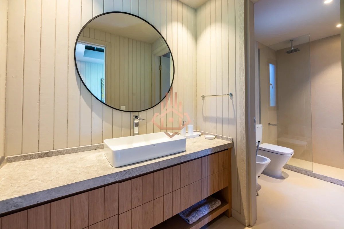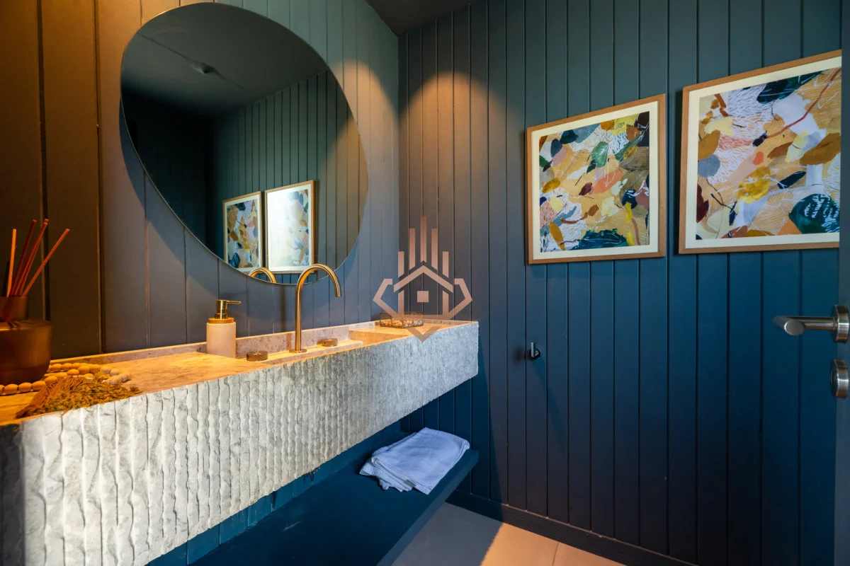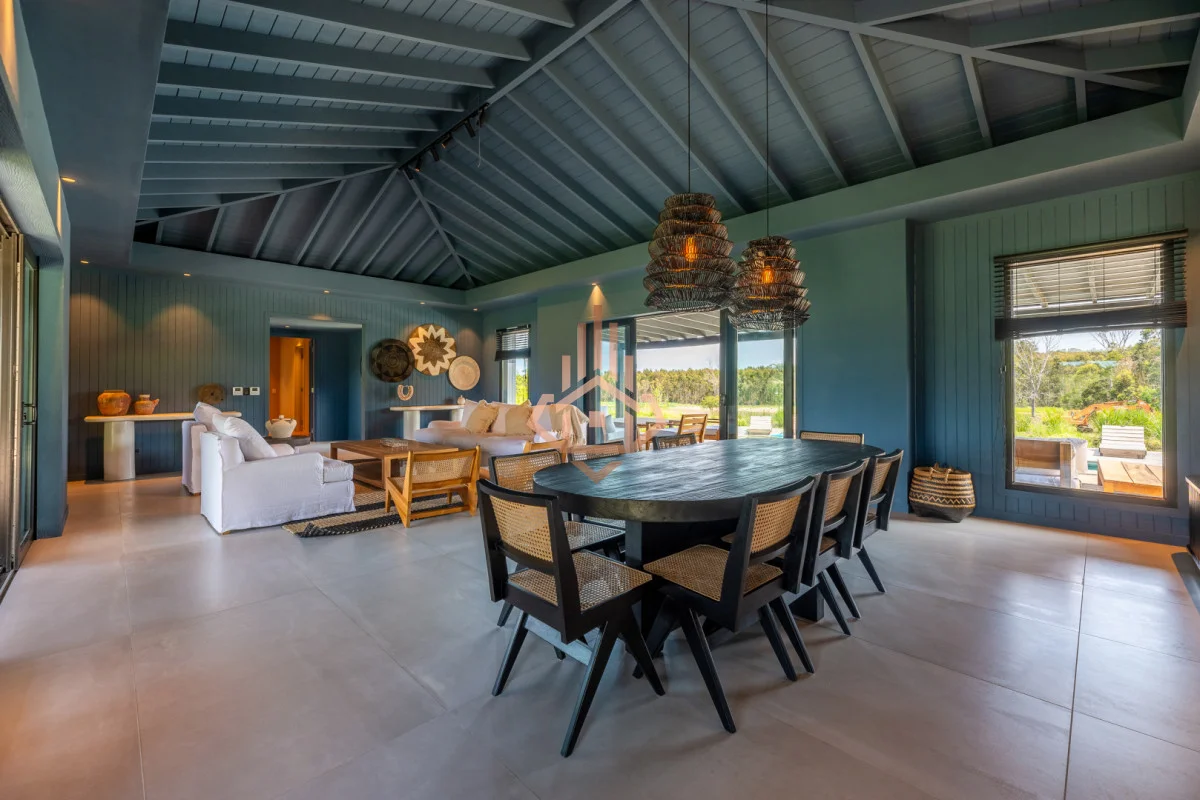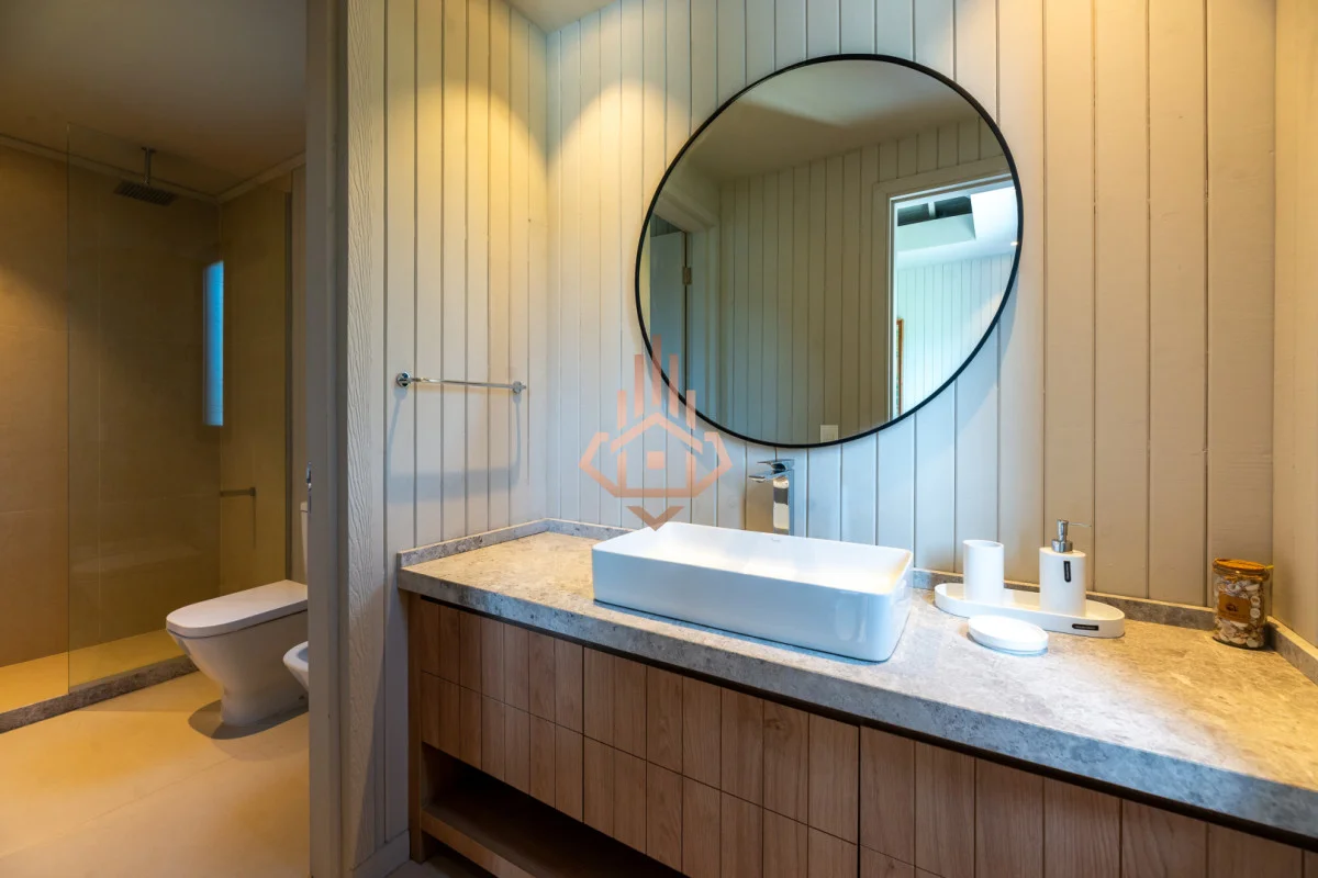 La residencia dispone de 4 dormitorios en suite, más una dependencia en suite, lo que brinda comodidad para familia e invitados. En el área social se destaca la parrilla, ideal para reuniones y momentos de disfrute. Además, la casa cuenta con piscina y un amplio deck que la rodea, creando un ambiente funcional y relajado.