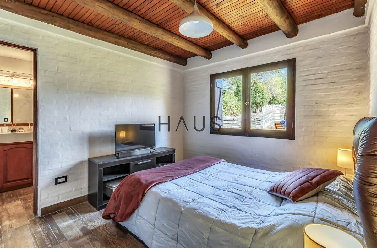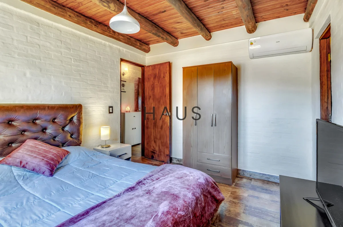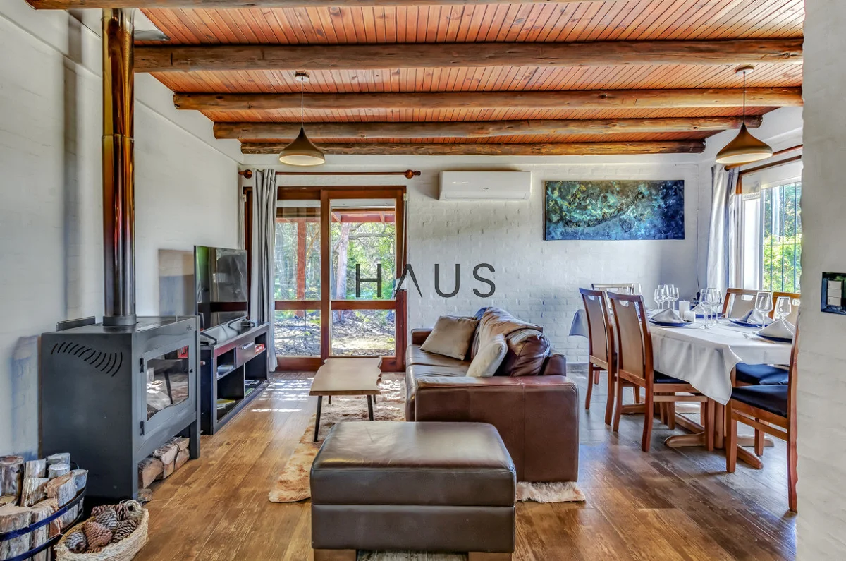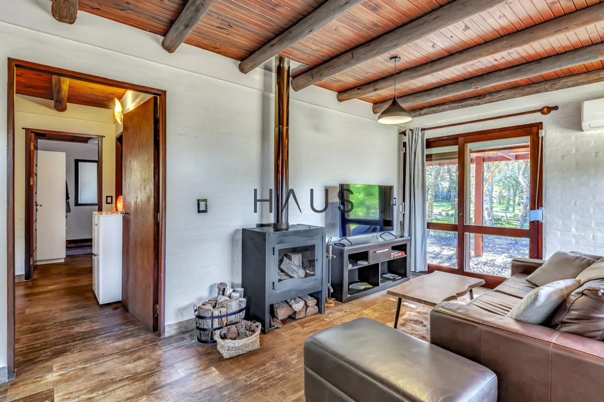 estufa a leña de alto rendimiento, cocina integrada con barra. Aire acondicionado en