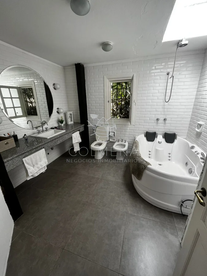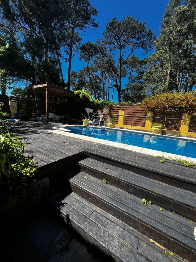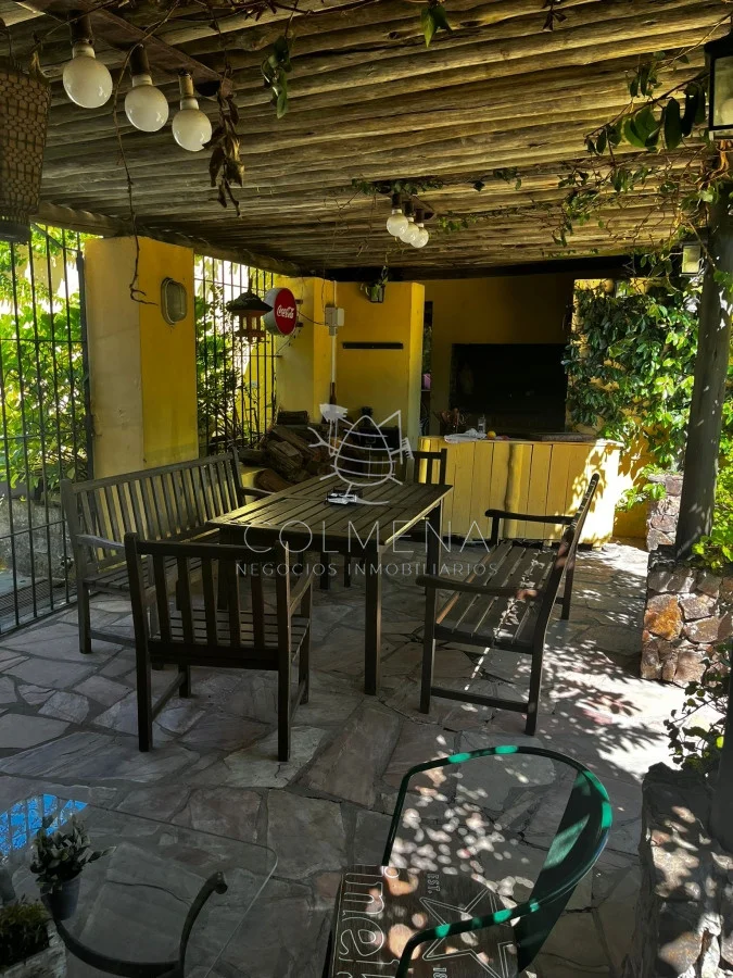 Tiene un patio en el medio de la casa por el cual salis y vas al parrillero y de ahi a la piscina, todo el area es super lindo, esta cubierto de follaje.