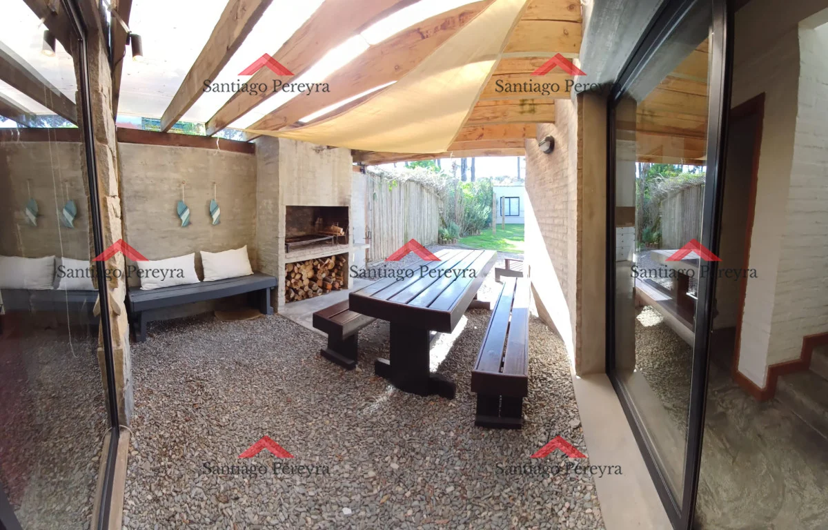 Ubicada en Montoya a tan sólo dos cuadras del mar. Para disfrutar en familia. Comodidades: - Living comedor - Terraza - Estufa a leña - Cocina integrada - 3 Dormitorios (2 suites) - 3 Baños - Lavadero - Parrillero techado - Piscina - Casa de Huéspedes compuesta por una kitchenette, dos camas de una plaza y 1 baño Referencia Interna : Tera-14668