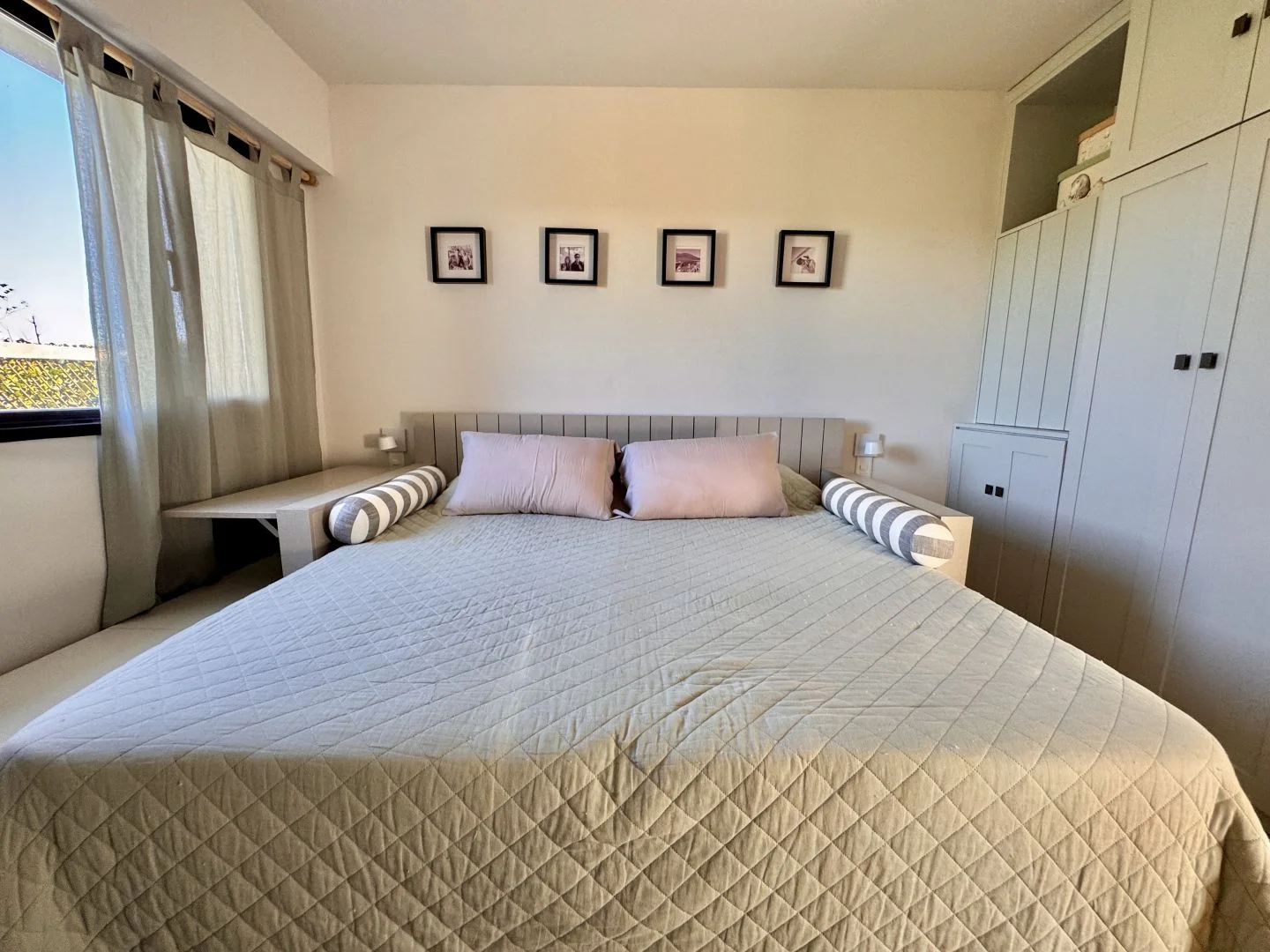La propiedad cuenta con una suite principal con vestidor y baño privado, dos dormitorios que comparten un baño completo, un cuarto adicional con sofá cama matrimonial, y dependencia de servicio exterior con entrada independiente.