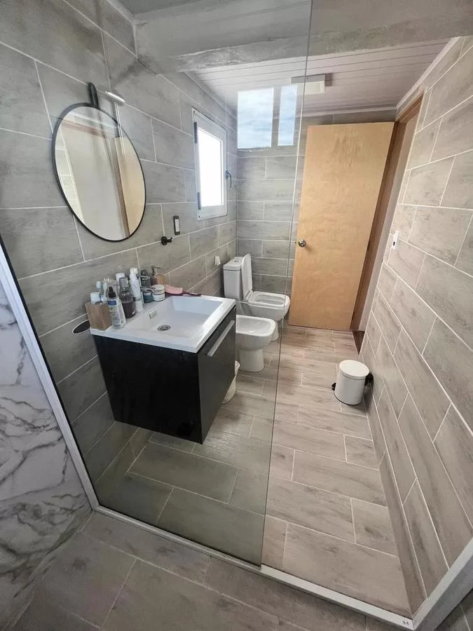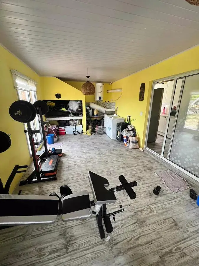 Casa con tres dormitorios, dos baños, amplio living, cocina, comedor, barbacoa Cerrada, garaje balcón con vista a La playa Amplio patio de 450 MTS de terreno , casa muy iluminada ,seca , aberturas de aluminio Blanco ,pozo de agua propio.