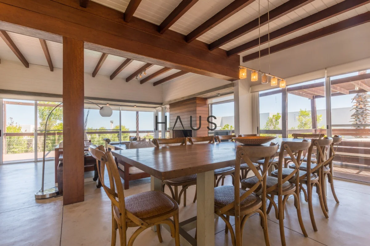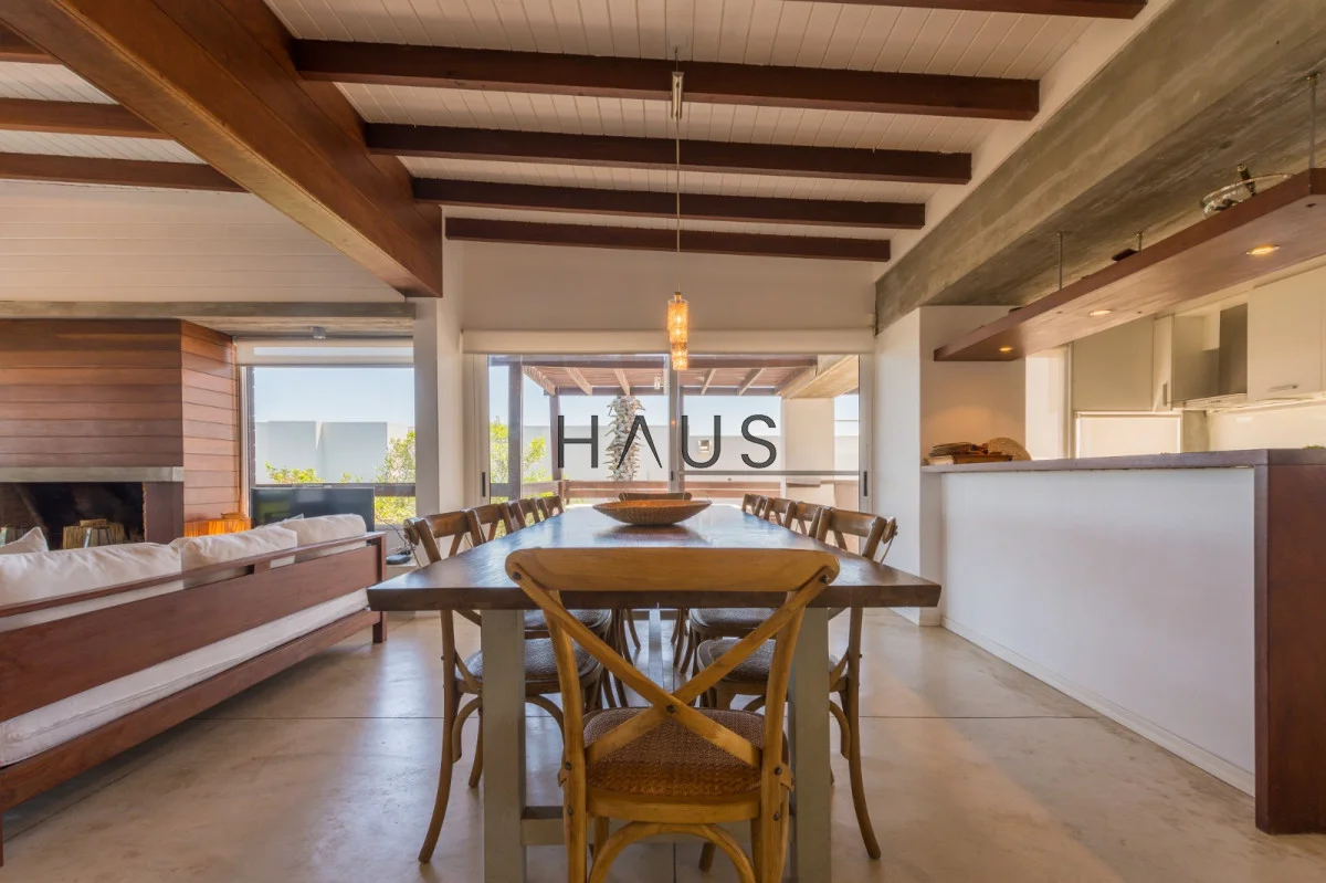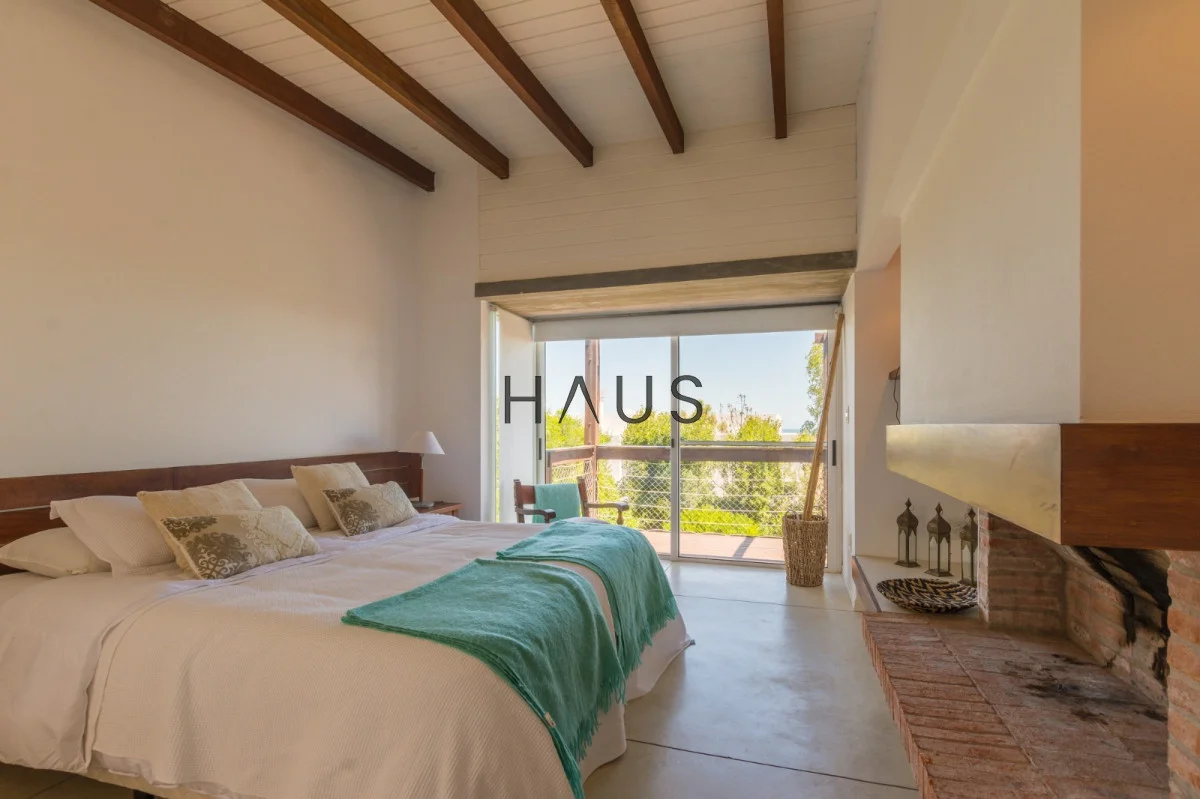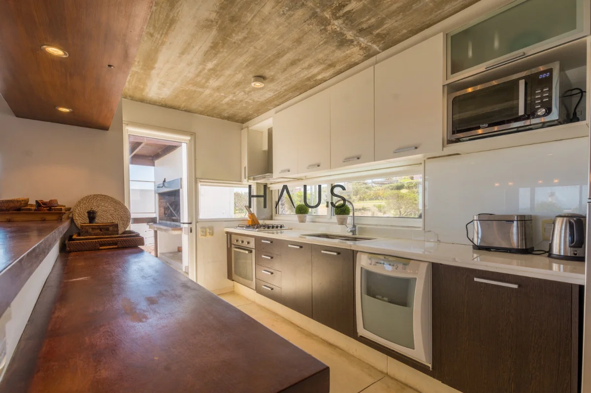 Cuenta con living-comedor con estufa a leña, cocina americana, 4 dormitorios (2 en suite), 3 baños, dependencia de servicio con baño (opción a 5º dormitorio), lavadero, terrazas, parrillero, piscina y cochera.