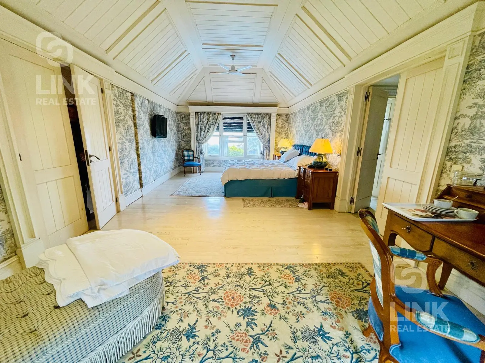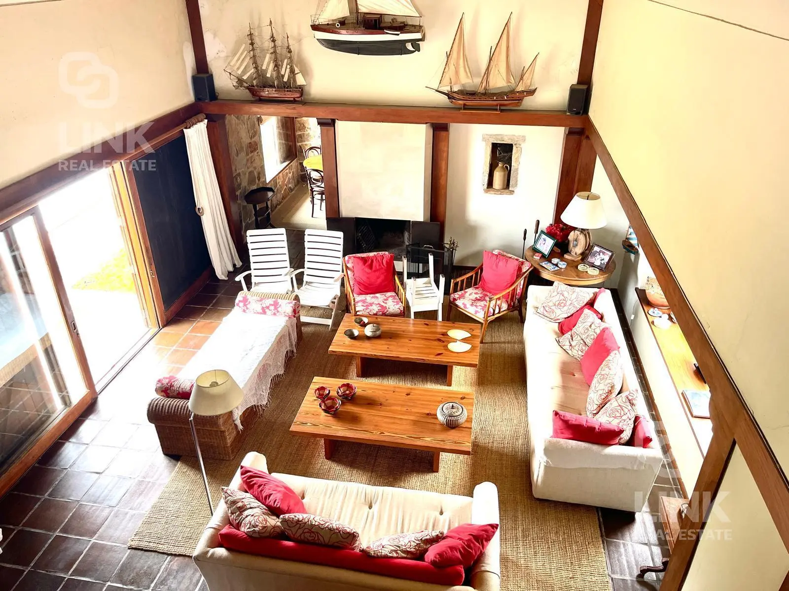 La propiedad se distribuye en espacios amplios y luminosos: un living con estufa a leña, comedor independiente, amplia cocina, parrillero integrado y un entrepiso con estar íntimo. En su interior alberga 6 dormitorios, 5 de ellos en suite, destacando la máster suite con vestidor y baño privado de grandes dimensiones.