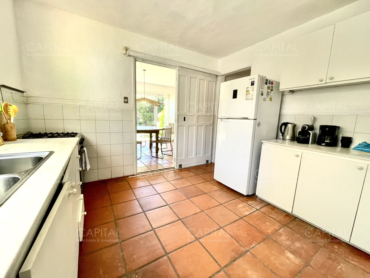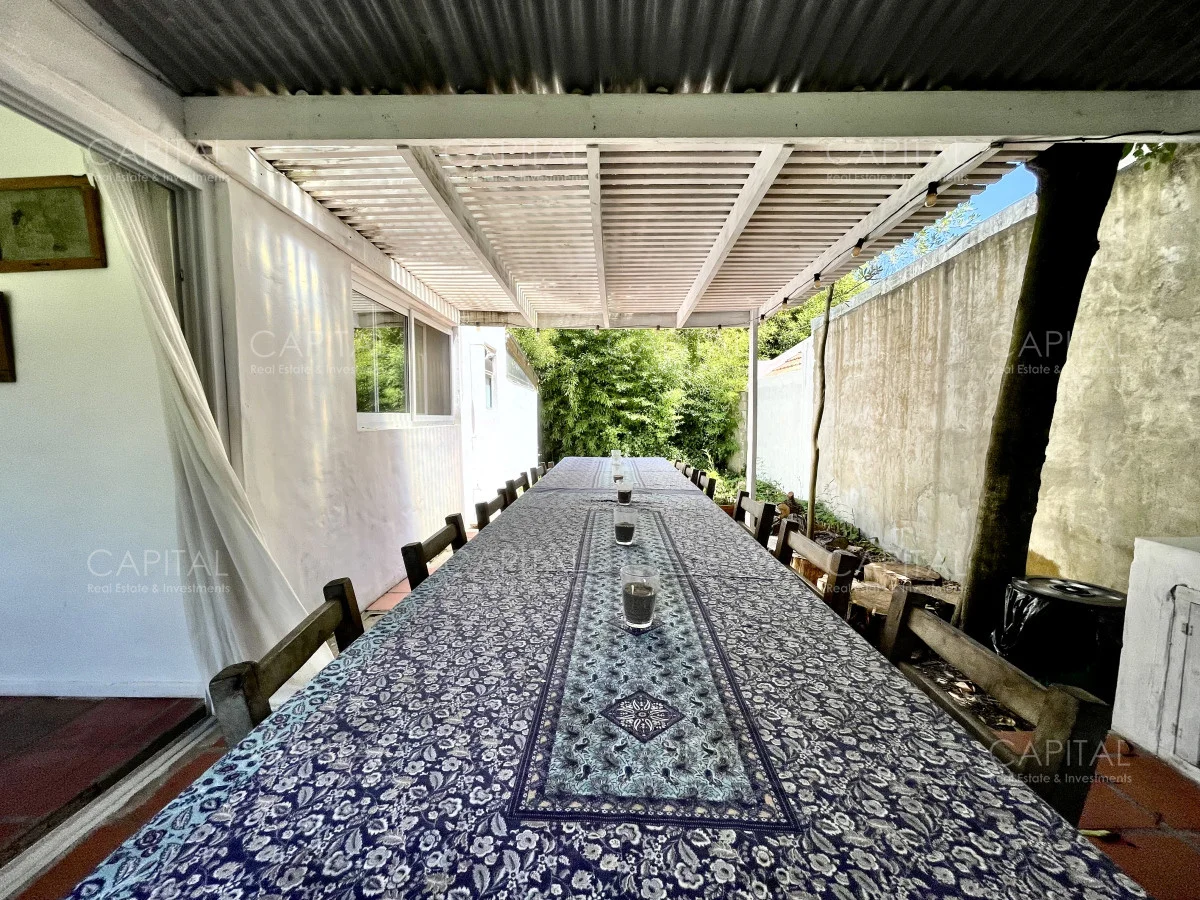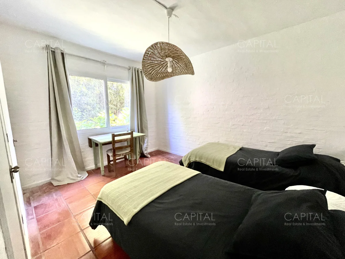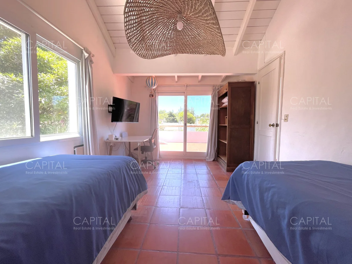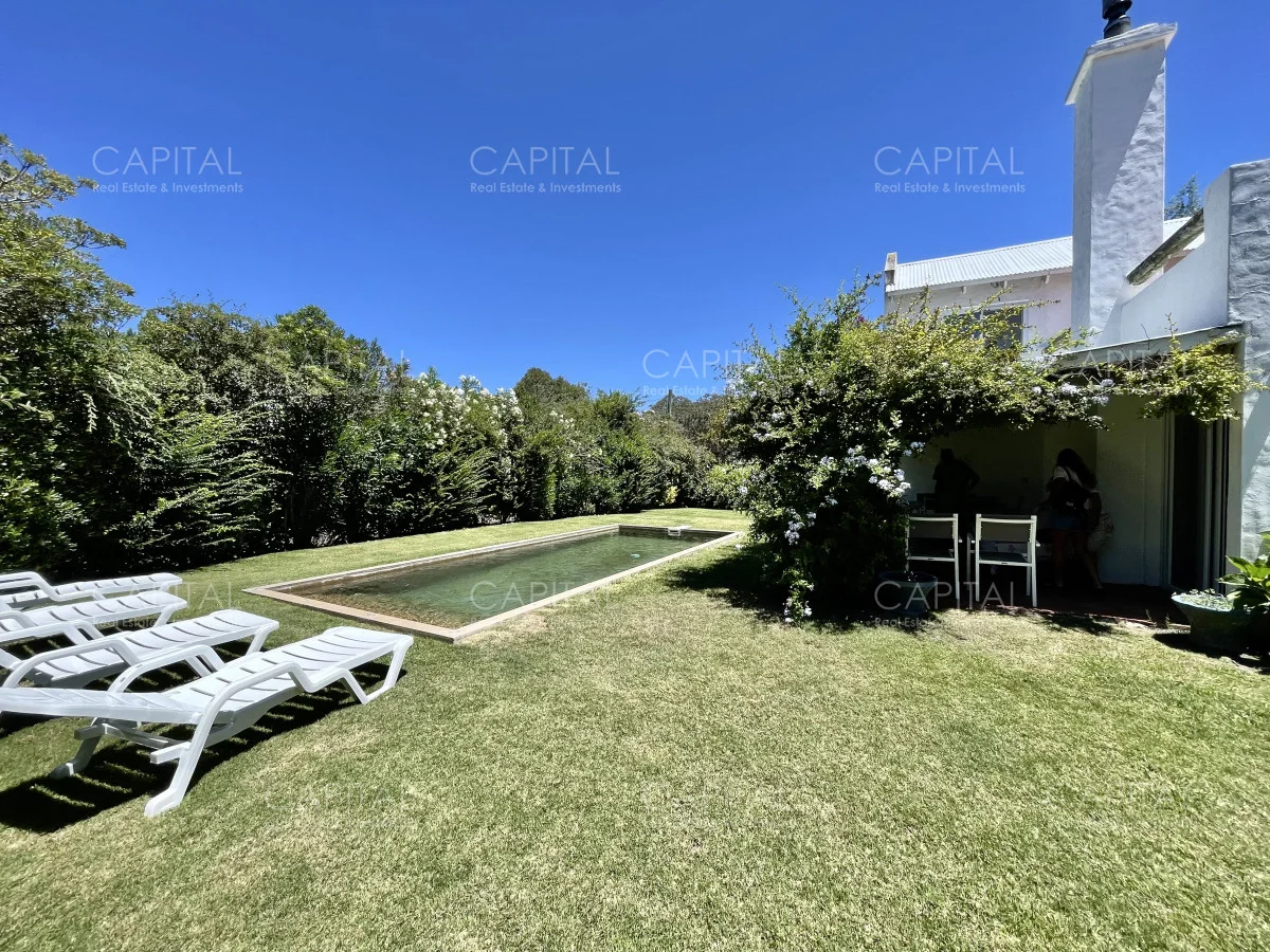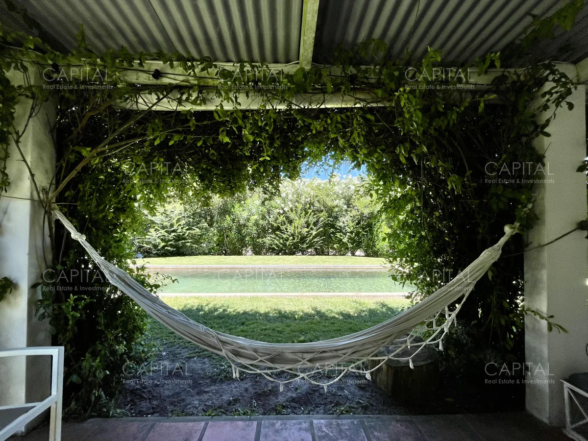 Jardín de 485 m2 . La casa tiene cerco en todo el perímetro, con estacionamiento, Parrillero, Piscina con cerco para niños, 5 (cinco) Habitaciones con aire acondicionado split frío-calor (una de ellas con baño en suite), 3 (tres) Baños completos (uno de ellos en suite con la habitación principal). Dependencia de servicio con 2 camas y Baño de servicio