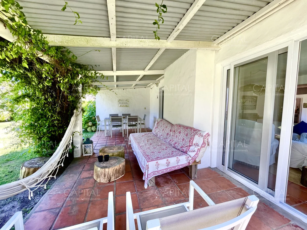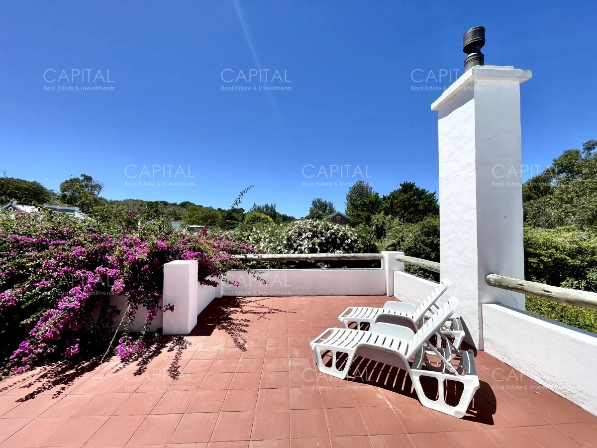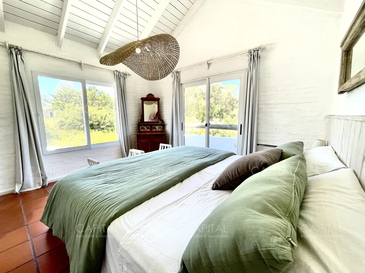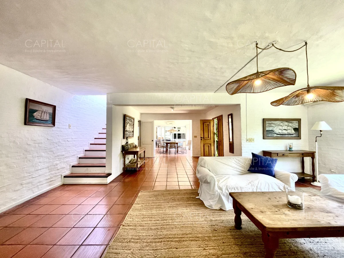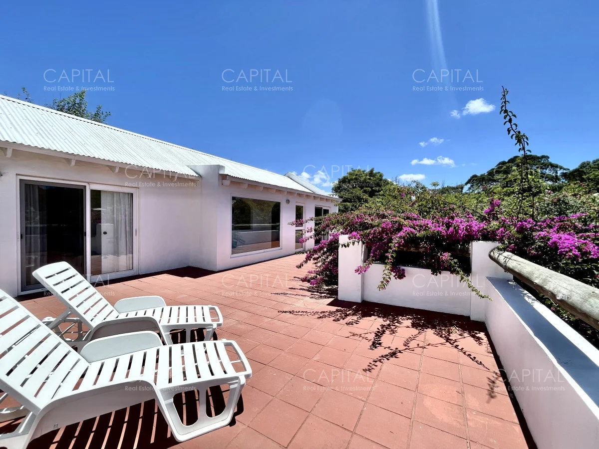 Jardín de 485 m2 . La casa tiene cerco en todo el perímetro, con estacionamiento, Parrillero, Piscina con cerco para niños, 5 (cinco) Habitaciones con aire acondicionado split frío-calor (una de ellas con baño en suite), 3 (tres) Baños completos (uno de ellos en suite con la habitación principal). Dependencia de servicio con 2 camas y Baño de servicio