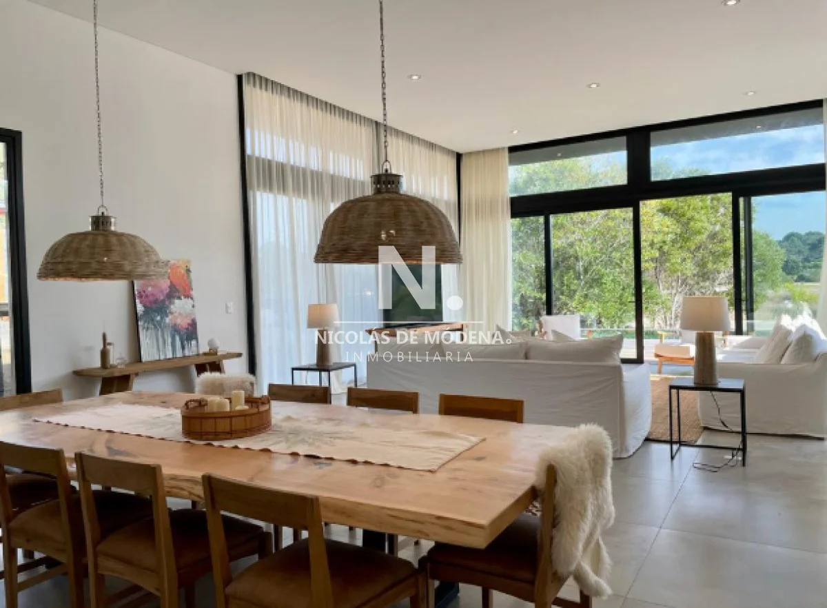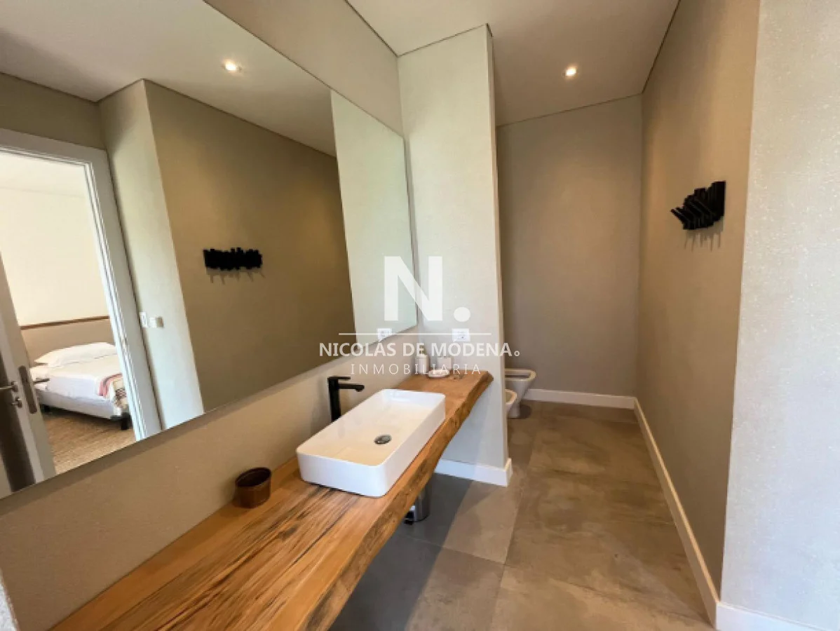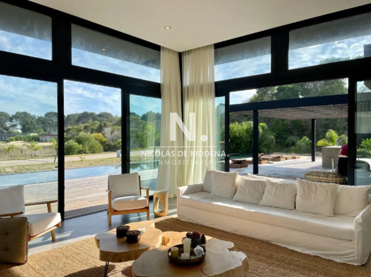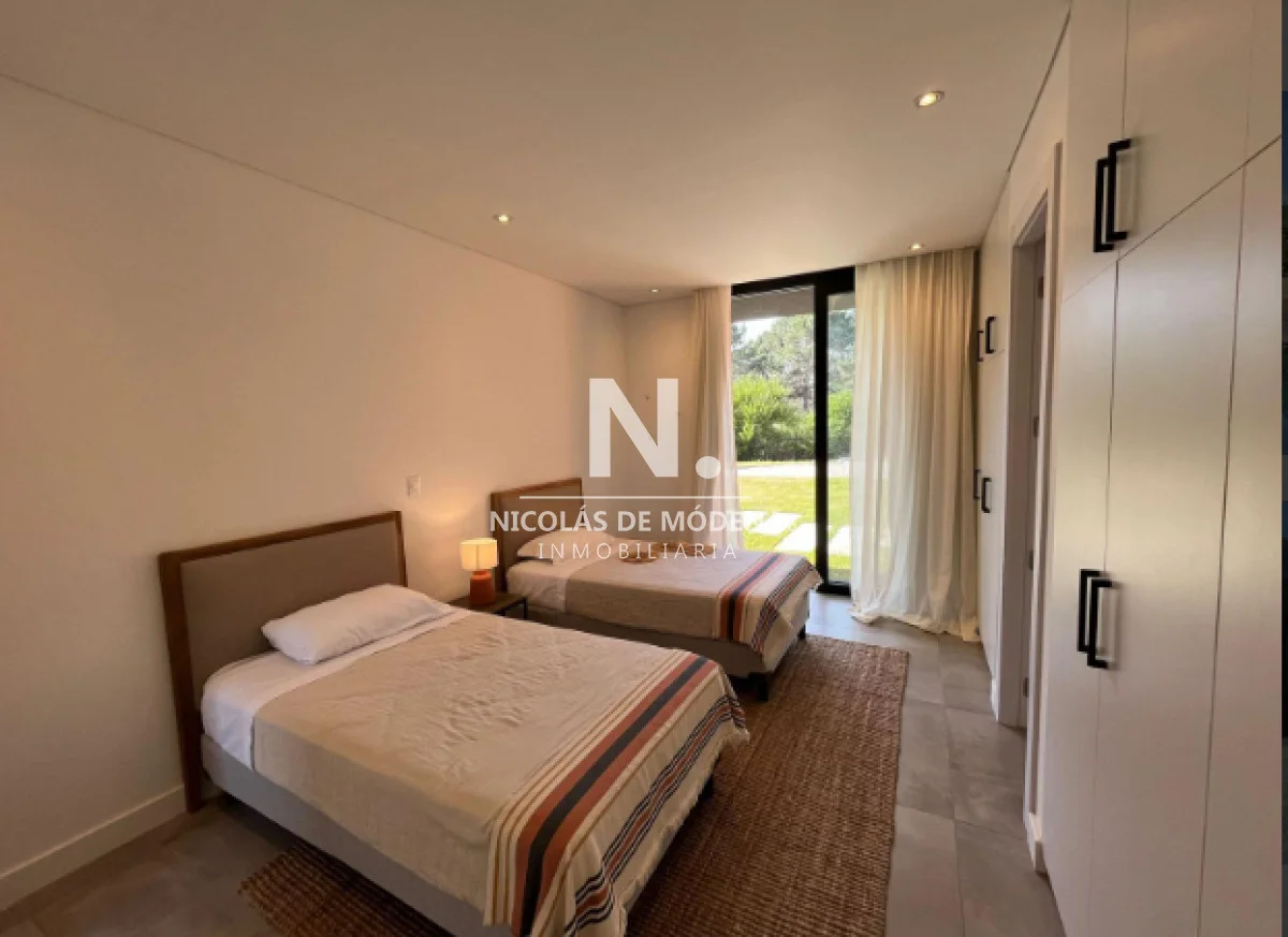 La casa cuenta con 4 dormitorios, todos ellos suites, y 4 baños completos, proporcionando una capacidad de alojamiento para 10 personas, lo que garantiza amplitud y privacidad para todos los huéspedes. El diseño interior se distingue por espacios amplios y luminosos, incluyendo un living comedor integrado, perfecto para la convivencia y el entretenimiento. La cocina, completamente equipada, dispone de anafe, microondas, heladera con freezer, campana, horno y amplios placares, facilitando la preparación de comidas gourmet. Los dormitorios, diseñados para el máximo confort y privacidad, están equipados con placares y aire acondicionado, asegurando una temperatura agradable durante todo el año. Los baños, con acabados de alta calidad, incluyen bañera y bidet. El equipamiento adicional comprende T.V., ofreciendo opciones de entretenimiento para todos los residentes.