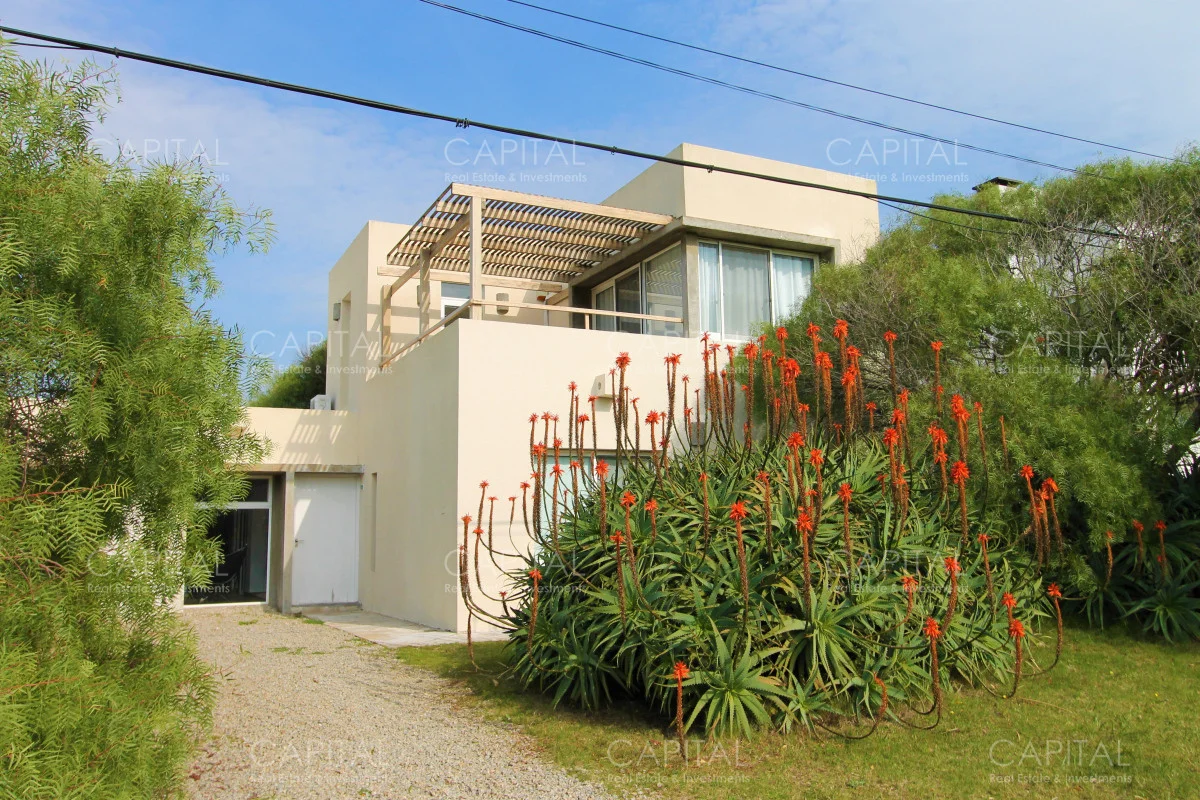 Casa en Manantiales de estilo moderno muy bien ubicada cerca del centro y próxima al mar. Distribuida en 2 niveles, living con comedor, cocina integrada en planta alta 3 dormitorios, 2 baños. Suite ppal con salida a linda terraza. Jardín. Súper practica y luminosa. Ideal para hacer todo caminando...