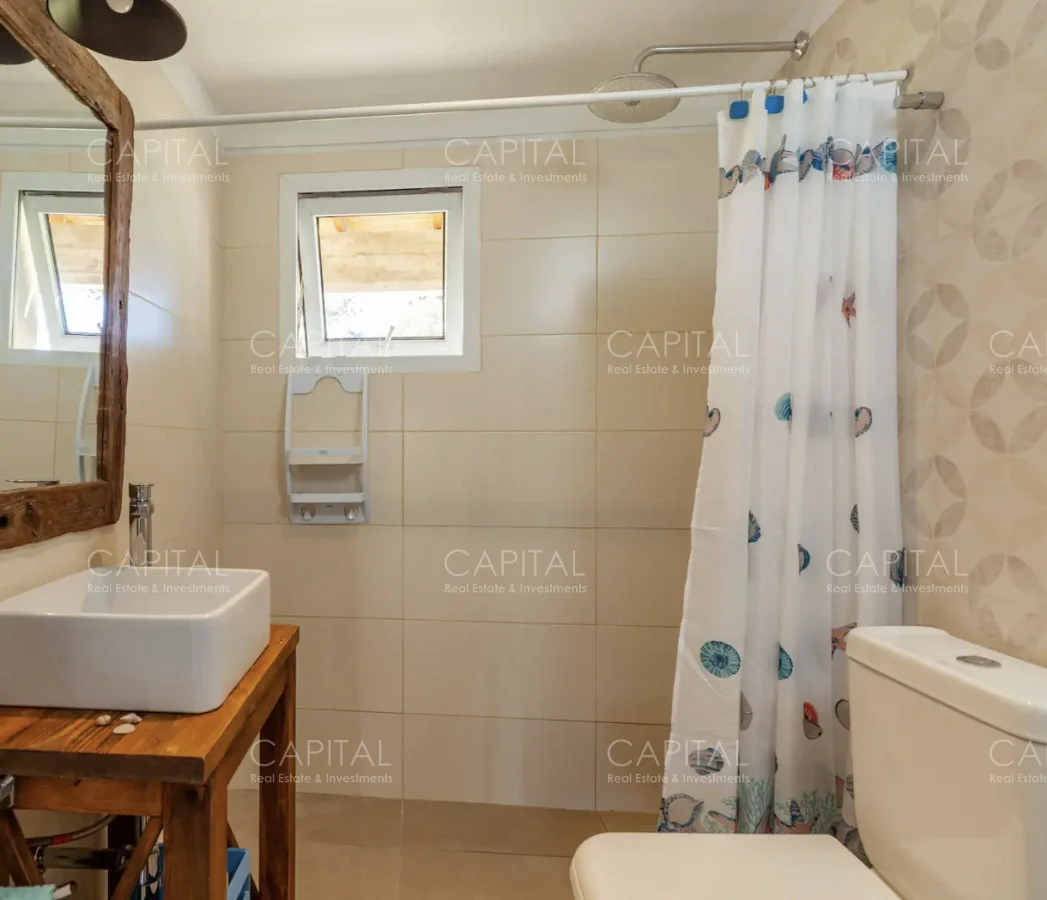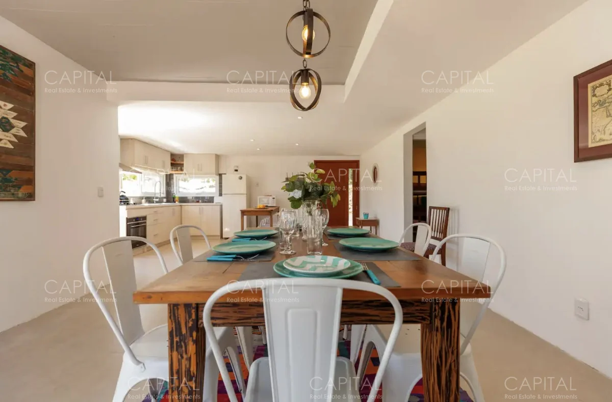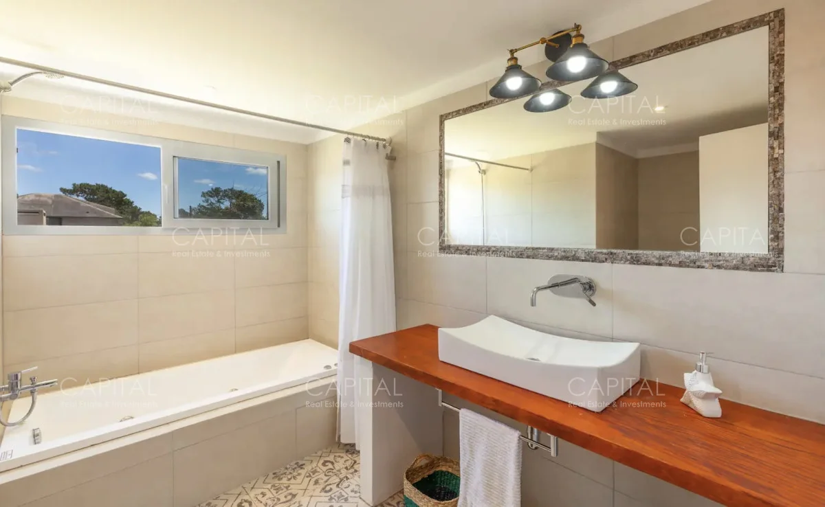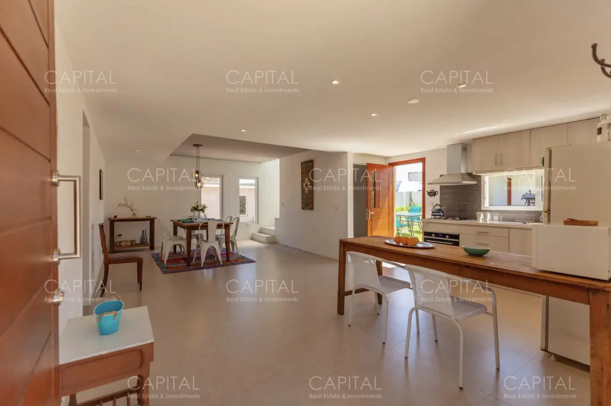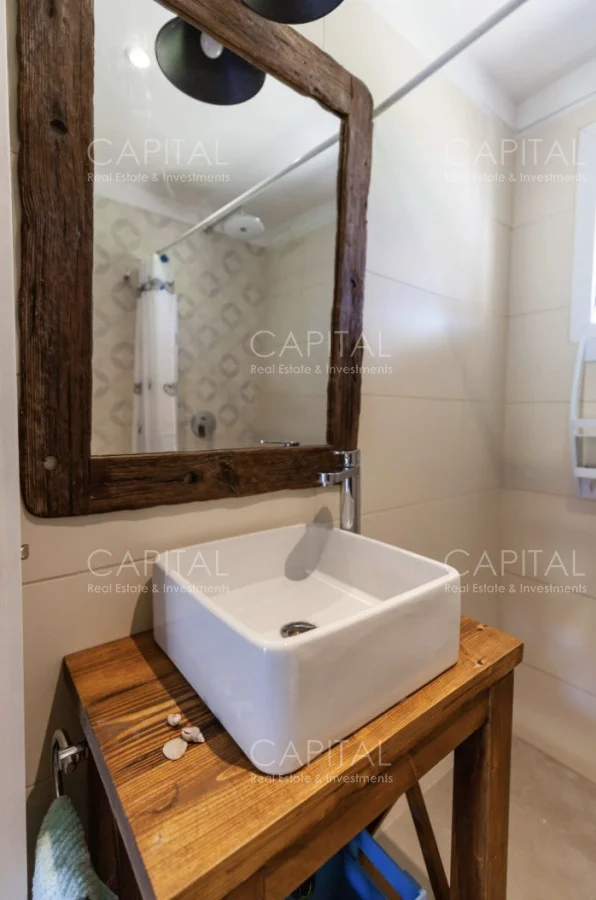 Muy linda casa en Mananatiales, cuenta con amplio jardín 700 mts, parrillero techado, 2 plantas. Planta baja living comedor luminoso, cocina integrada estilo americana muy bien equipada, 2 dormitorios que comparten baño ( uno con cama matrimonial y otro con cucheta) y en planta alta suite ppal con cama matrimonial, estar con salida a terraza con muy linda vista al mar. Lindo entorno arbolado. Ideal para disfrutar de las vacaciones.