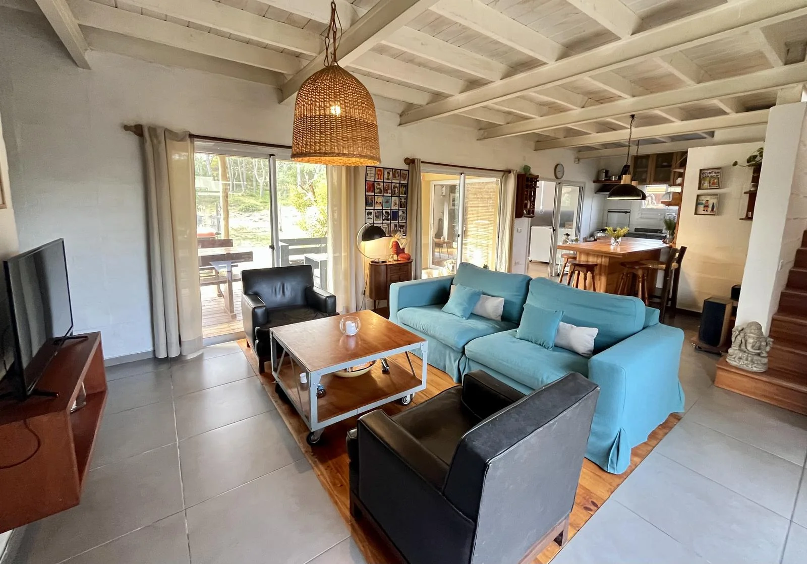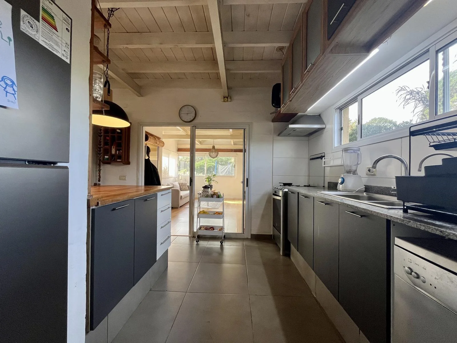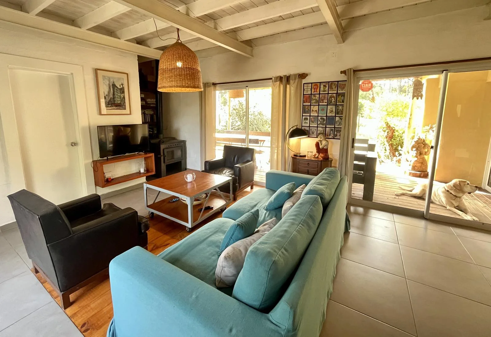 Esta propiedad de 148 m2 totales edificados cuenta con dos niveles. En planta baja, el living comedor con la cocina integrada con lavadero, baño para visitas y una sala multiusos (playroom, escritorio, sala de tv). Estufa de alto rendimiento en este sector y aire acondicionado. Pérgola Tachada hacia el jardín. Gran vista al bosque!
