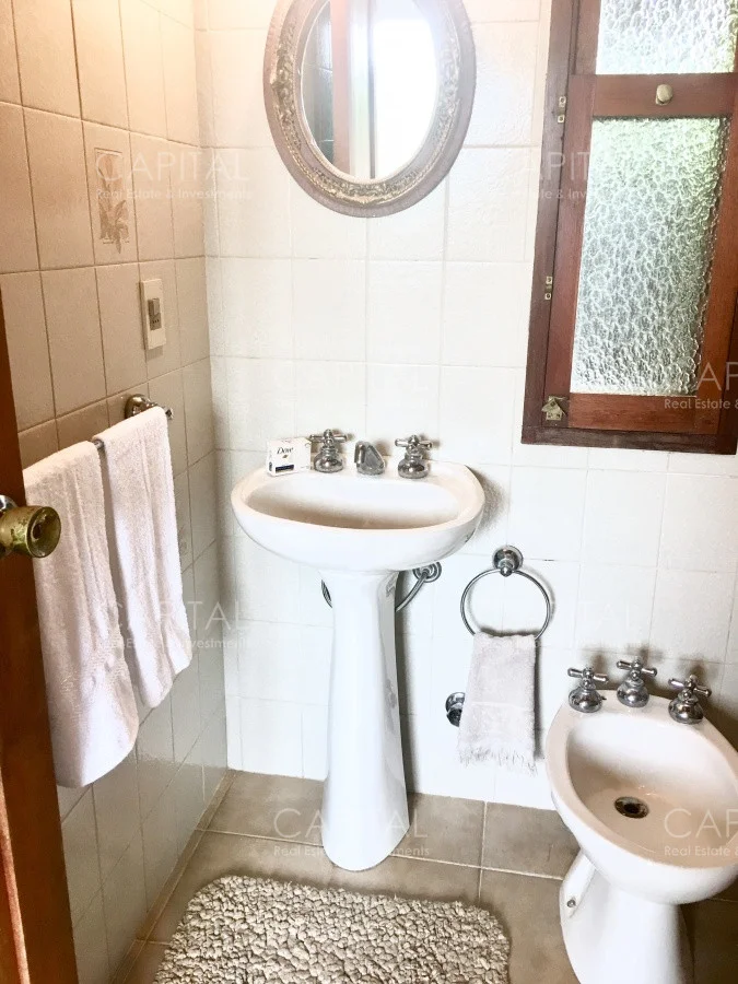 El tercer dormitorio tiene una cómoda de cuatro cajones y mesas de luz españolas, dos sommier de alta densidad. Tv 32?. Baño completo con ducha y mampara, ventana. Gran pasillo con placard. Split fríocalor en todos los ambientes