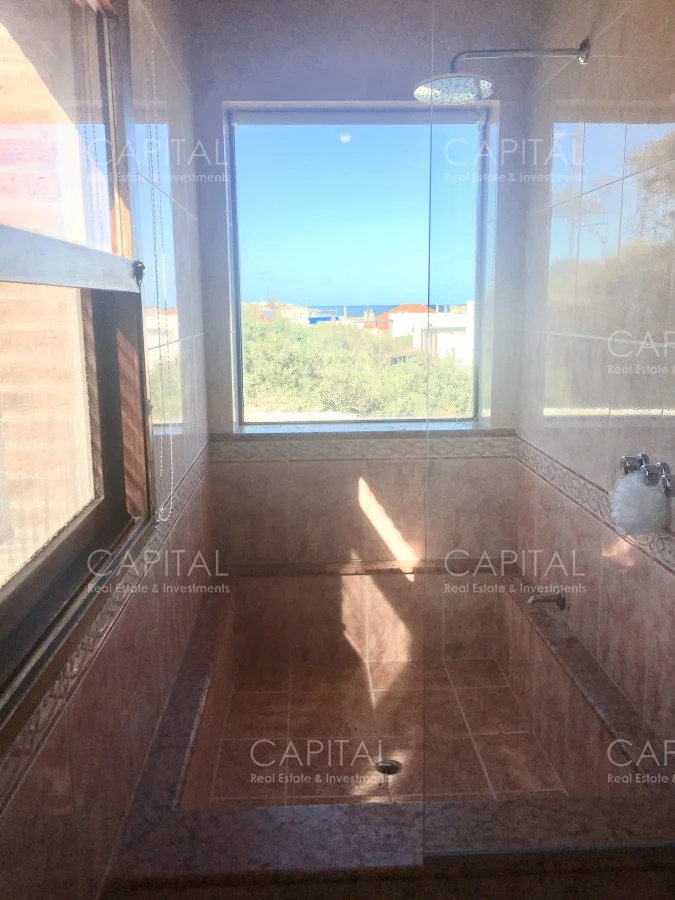 Baño doble, dos piletas, amplios placares, por otro lado está el baño con una gran bañera y vista al mar.