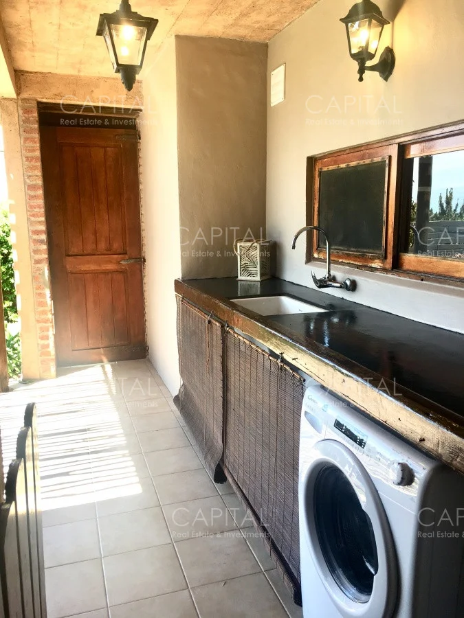 Lavadero con lavarropas Smart, entrada lateral al parrillero. Jardín y deck.