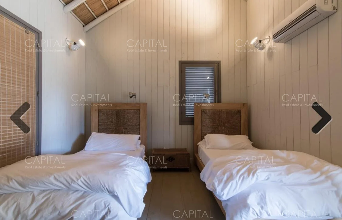 Casa que se divide en 3 sectores principales, El primer sector vendría a ser la zona de los cuartos, 4 suites con AC y vestidores. La distribución de los cuartos es, uno principal con cama matrimonial con TV (DTV y DvD). Los otros 3 cuartos tiene 2 camas cada uno de plaza y media.