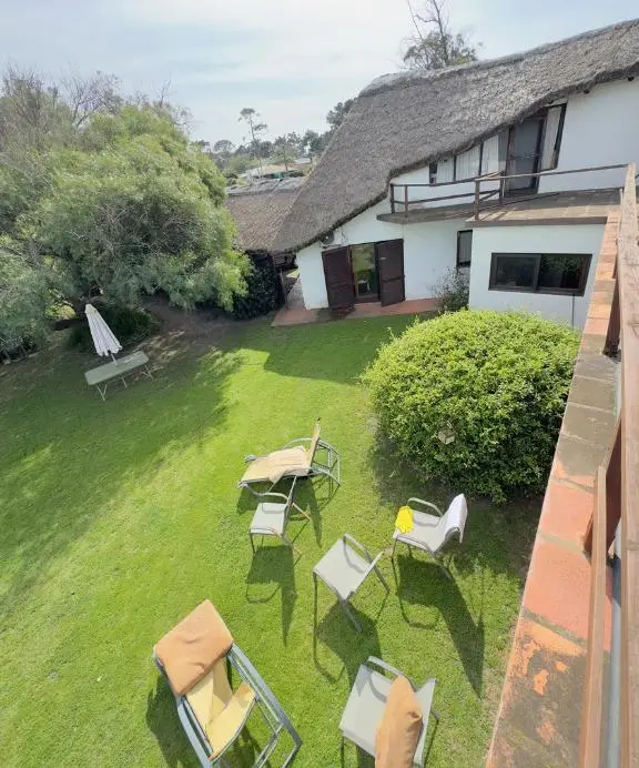 Exterior, cuenta con amplio parrillero techado, jardín, piscina y dependencia con baño