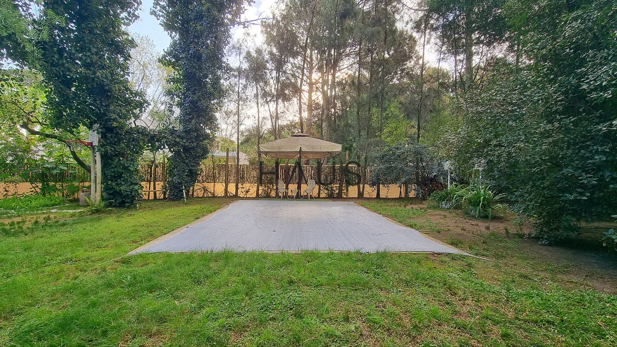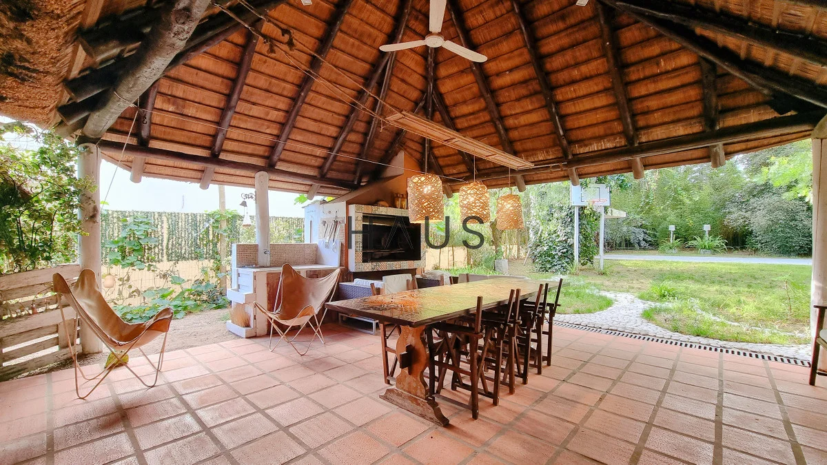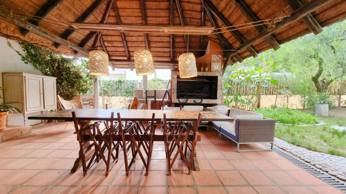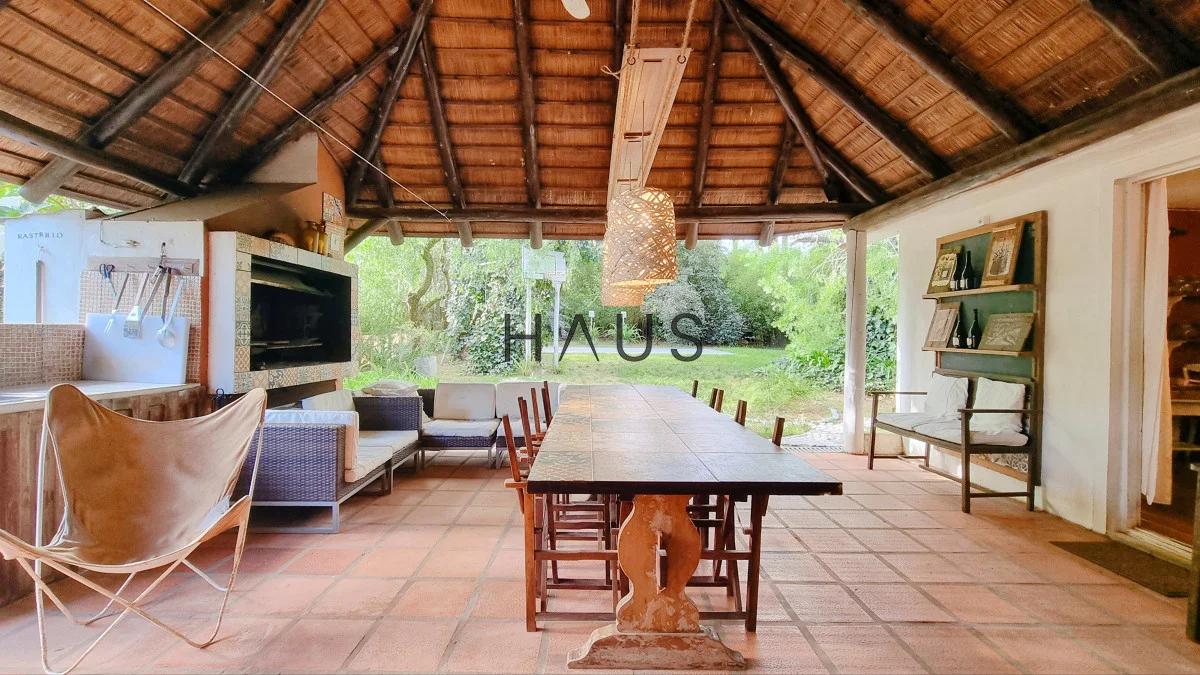 Parrillero techado a la salida del living y cocina.