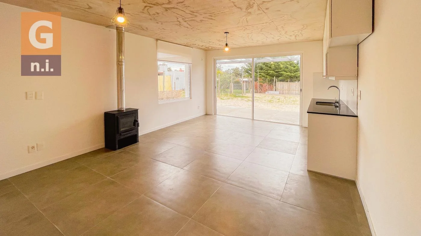 La propiedad se organiza en una planta y combina comodidad con diseño moderno. Al ingresar, nos recibe un amplio living comedor con estufa de alto rendimiento que se integra de manera armoniosa a la cocina. Un baño social complementa esta zona y conduce a los dos dormitorios, uno de ellos con baño en suite, brindando mayor confort e independencia.